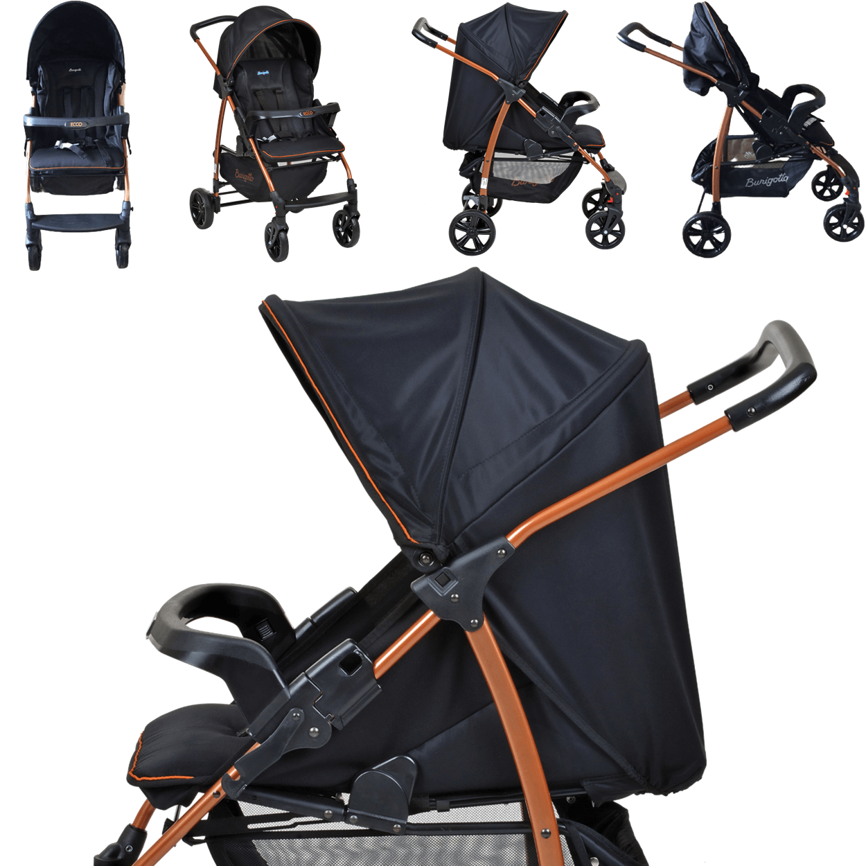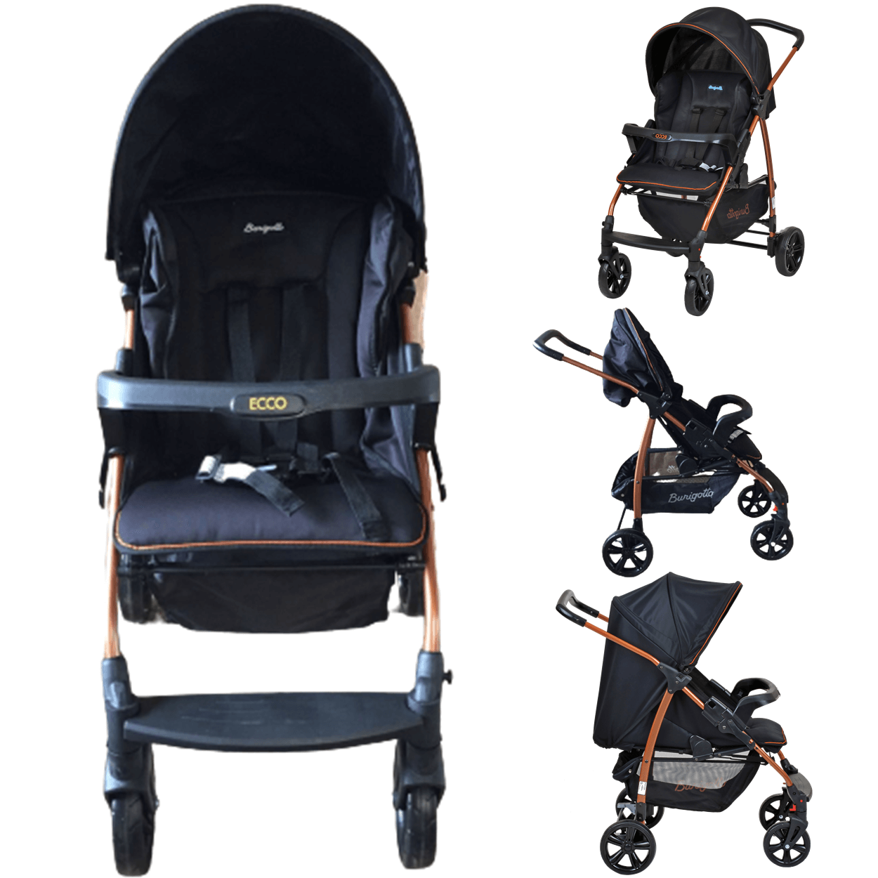 1 (um) Carrinho De Bebê Burigotto Ecco Preto Cobre