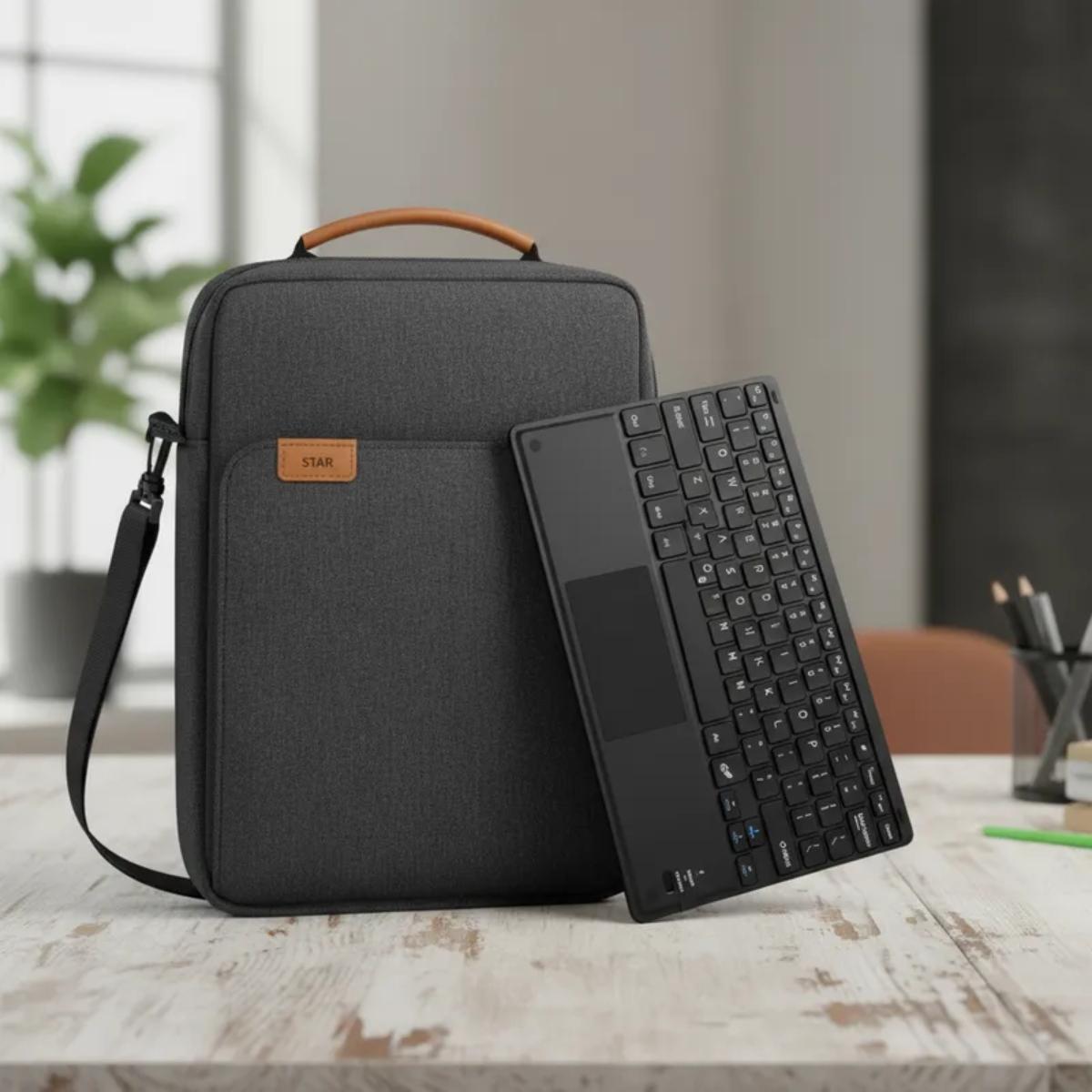 Composto Por Uma Case Bag Transversal, Um Teclado Com Touchpad, O Conjunto É Perfeito Para Quem Busca Conforto, Produtividade E Mobilidade No Dia A Dia.