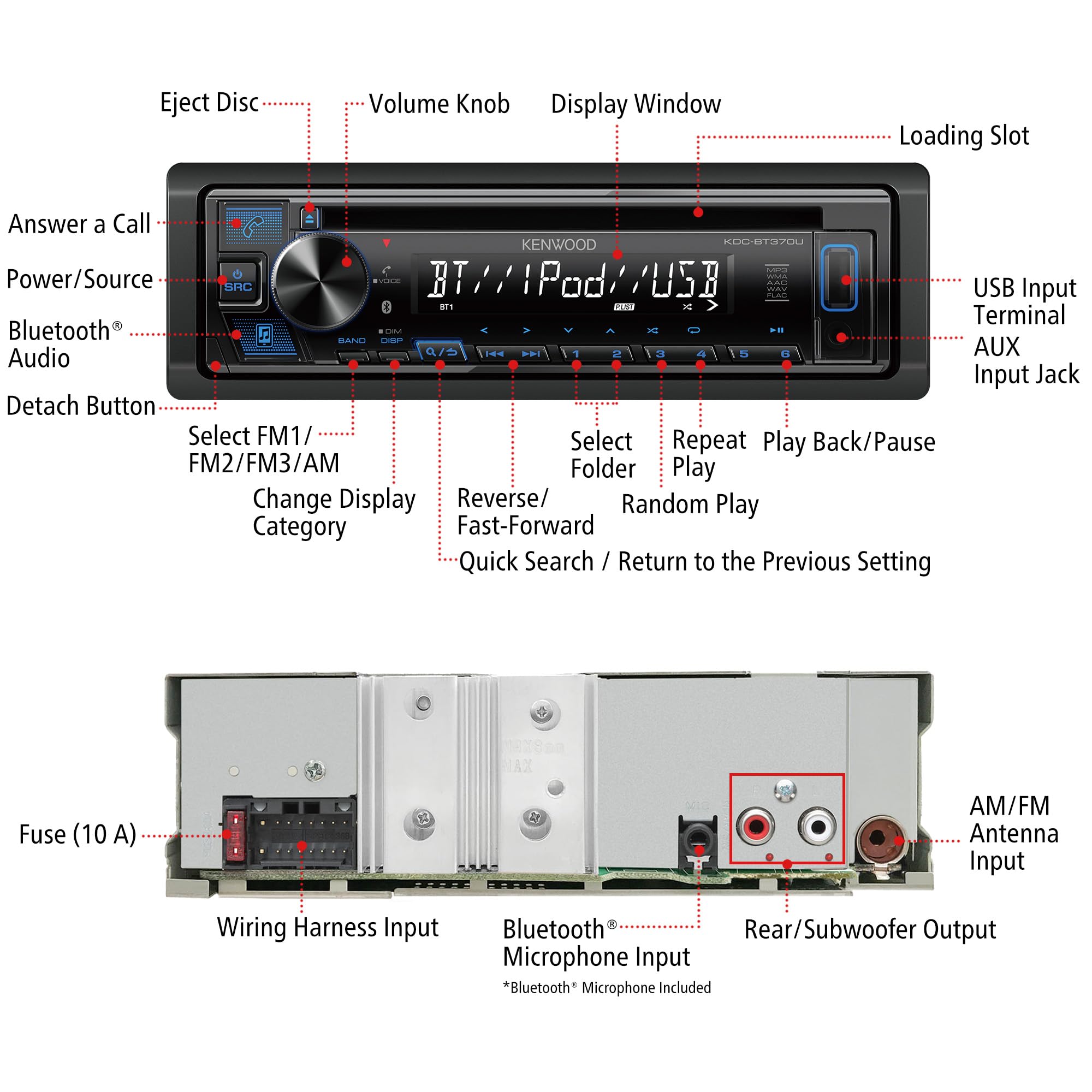 Cd Estéreo Para Carro Kenwood Kdc-bt370u Com Bluetooth, Usb E Alexa