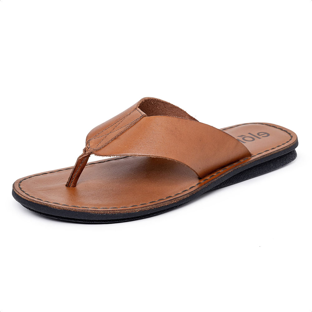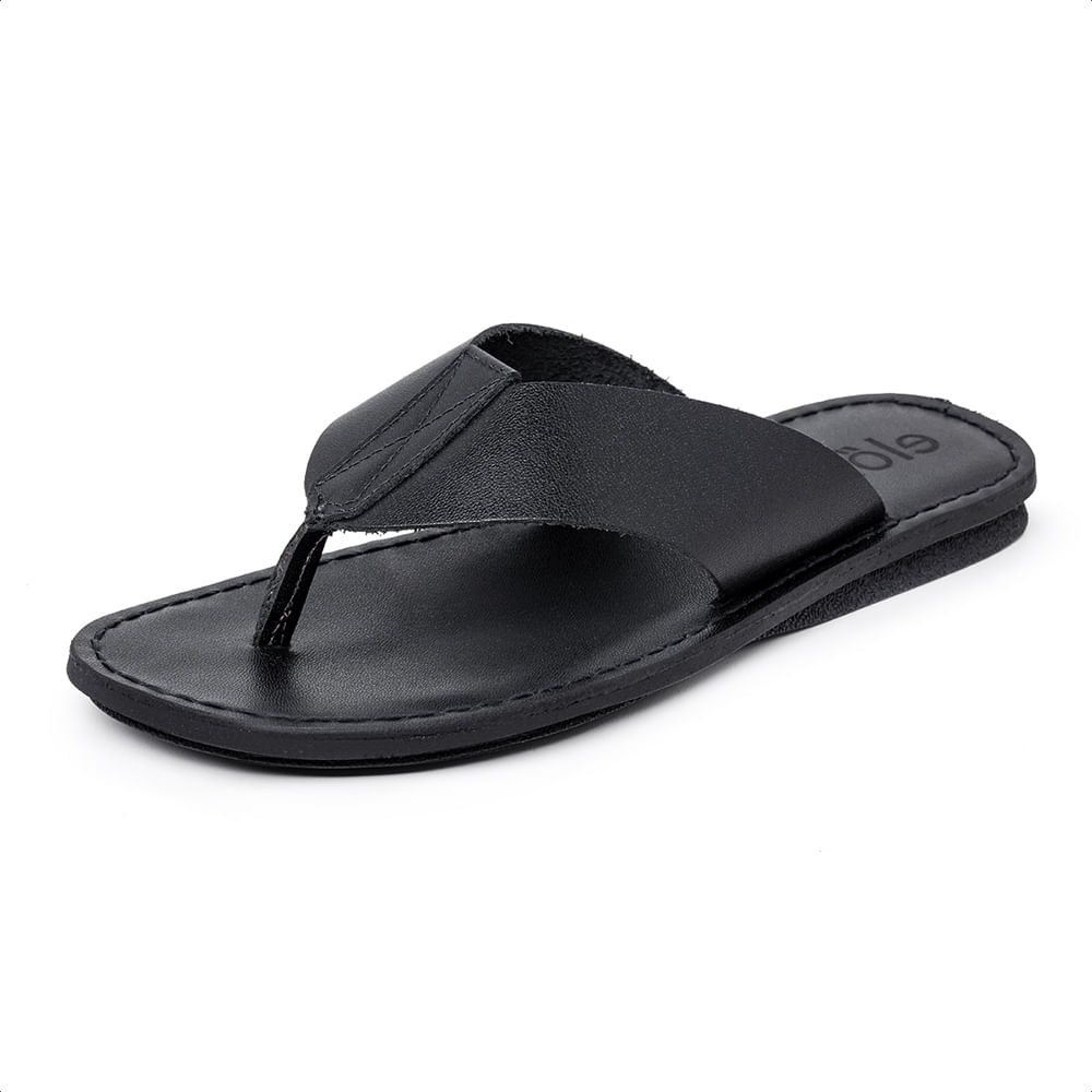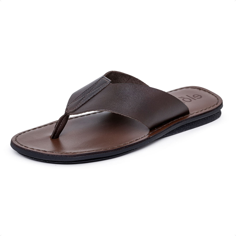 Chinelo De Dedo Conforto Couro Masculino Palmilha Macia Solado Borracha Antiderrapante Confortavel