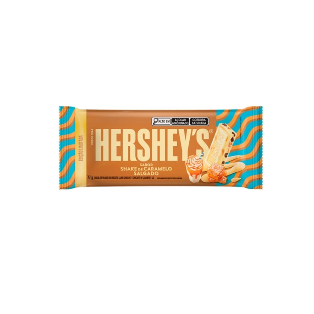 o chocolate Hershey's Shake De Caramelo Salgado 77g Traz Uma Combinaç,ã,o Irresistí,vel Para Os Amantes De Chocolate E Caramelo. Com Um Recheio Cremoso De Shake De Caramelo Salgado, Envolvido Por Uma Deliciosa Camada De Chocolate, Essa Novidade Da Hershey&rsquo,s Proporciona Uma Experiê,ncia ú,nica, Com Sabor Equilibrado E Textura Marcante.