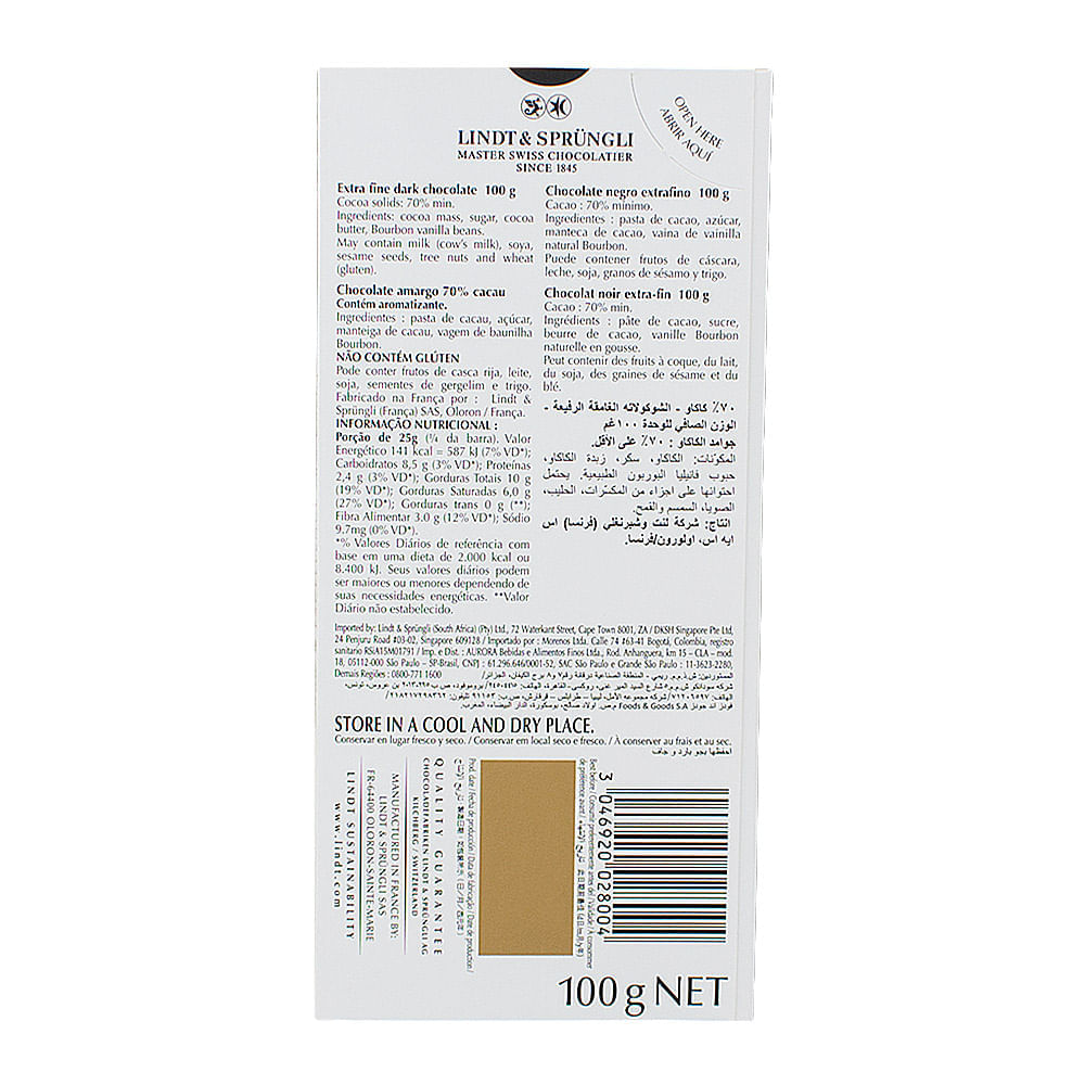 Chocolate Lindt Excellence 70% cacau Dark com 100g
