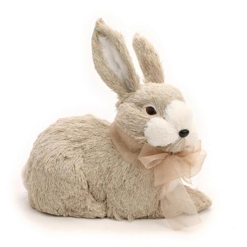 coelho Decorativo Deitado Com Laço No Pescoço. Bege E Branco