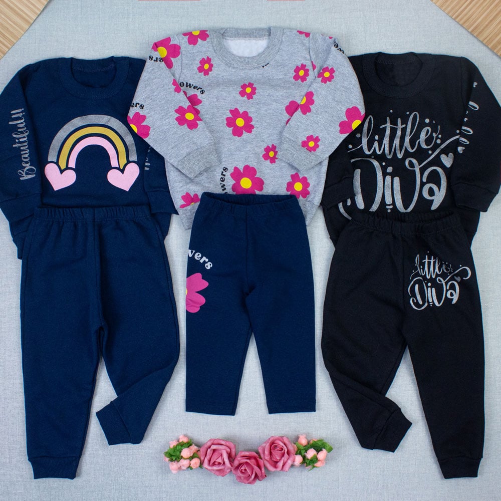 Conjunto Bebê Menina Em Moletom Estampado Quentinho