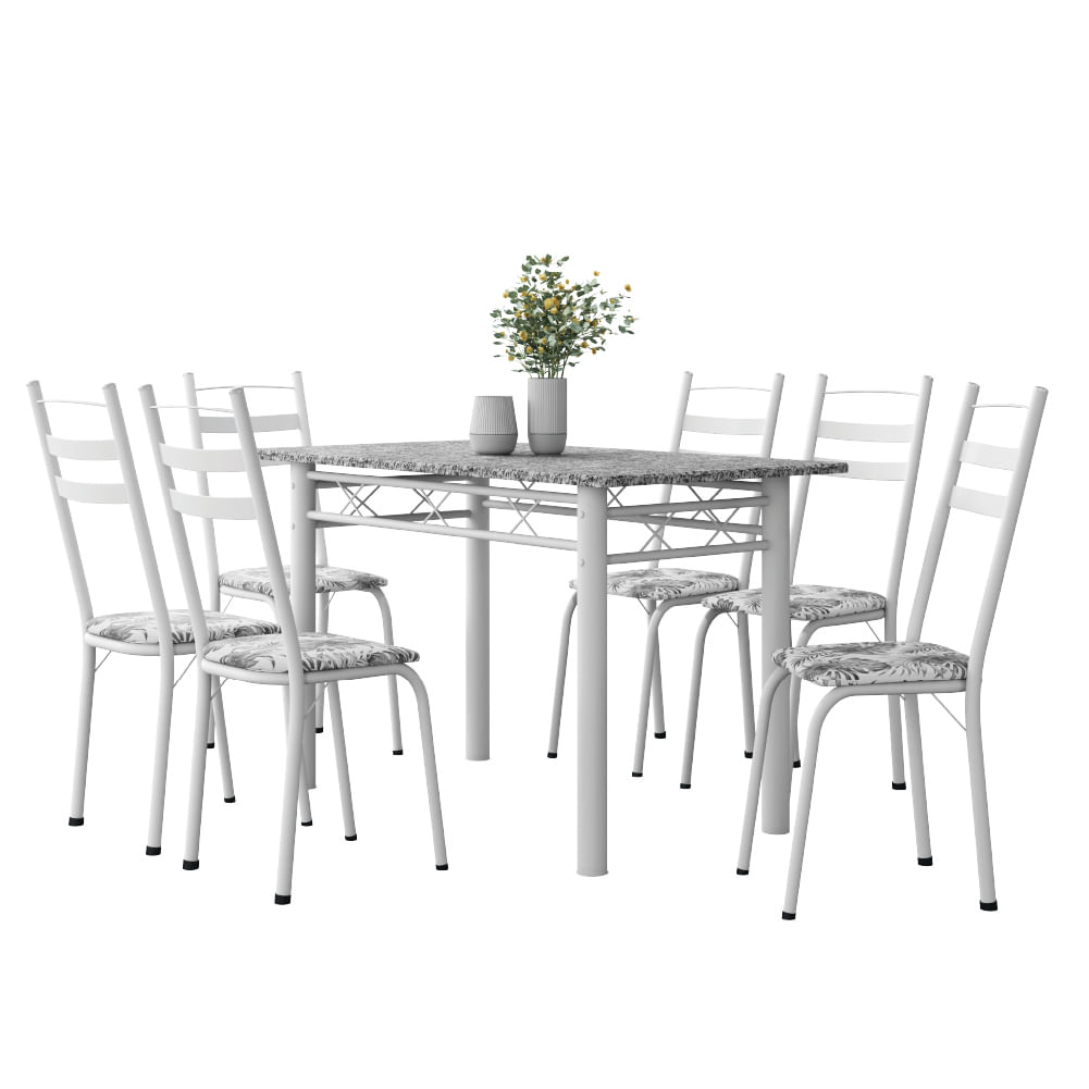 Conjunto De Mesa Sala De Jantar Leia Com 6 Cadeiras Tubular Granito 1,40m Artefamol