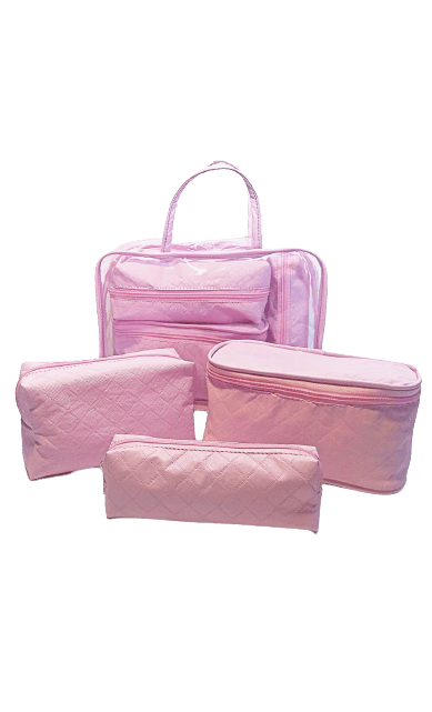 Lindo Conjunto De Necessaires Com 4 Pçs. Ideal Para Usar Como, Organizador De Maquiagem, Mala, Produtos De Beleza, Etc... Medidas: Medida 1: Altura 21 Cm - Largura 08 Cm - Comprimento 27 Cm. Medida 2: Altura 10 Cm - Largura 09 Cm - Comprimento 19 Cm. Medida 3: Altura 10 Cm - Largura 08 Cm - Comprimento 18 Cm. Medida 4: Altura 06 Cm - Largura 06 Cm - Comprimento 17 Cm.