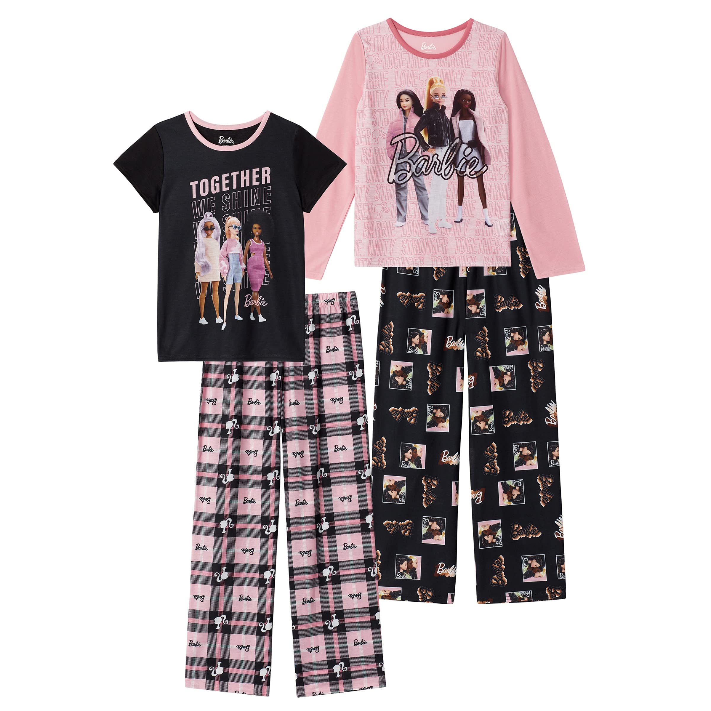 Conjunto De Pijama, Calças De Pijama E Camiseta De Dormir Para Meninas Da Barbie, 4 Peças