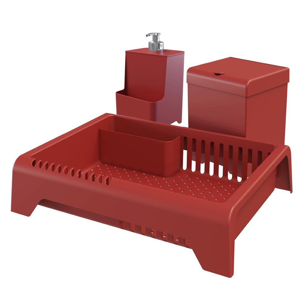 Conjunto Escorredor Lixeira E Dispenser Para Cozinha - Stolf