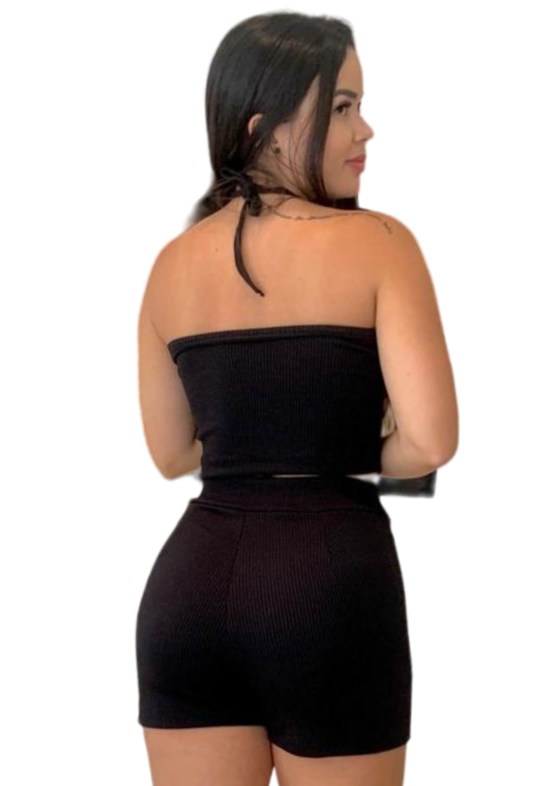 Conjunto Feminino Cropped Com Amarra No Pescoço Com Short !