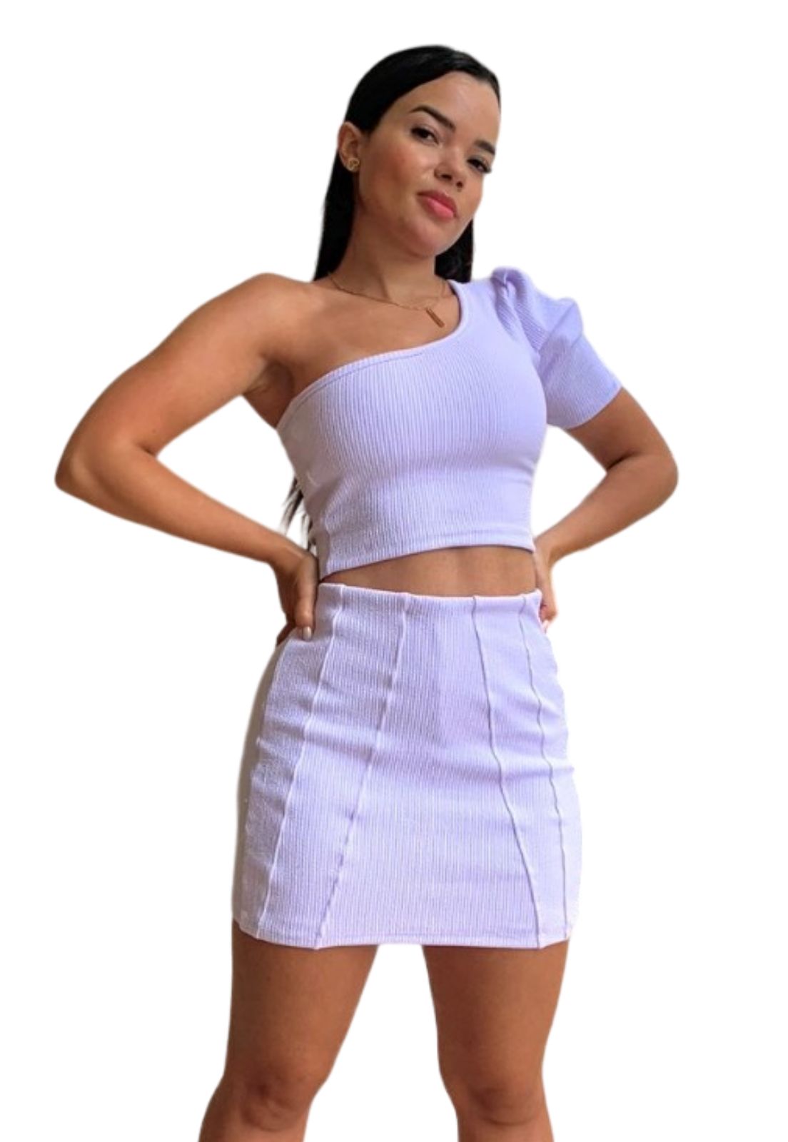 Conjunto Feminino Mula Manca Uma Manga Sem Bojo Short Saia