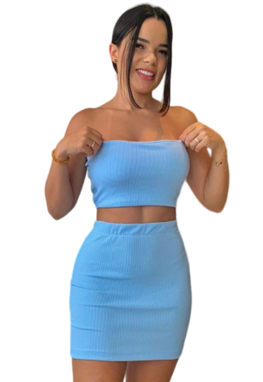 Conjunto Feminino Top Tomara Que Caia Com Bojo E Saia Justa