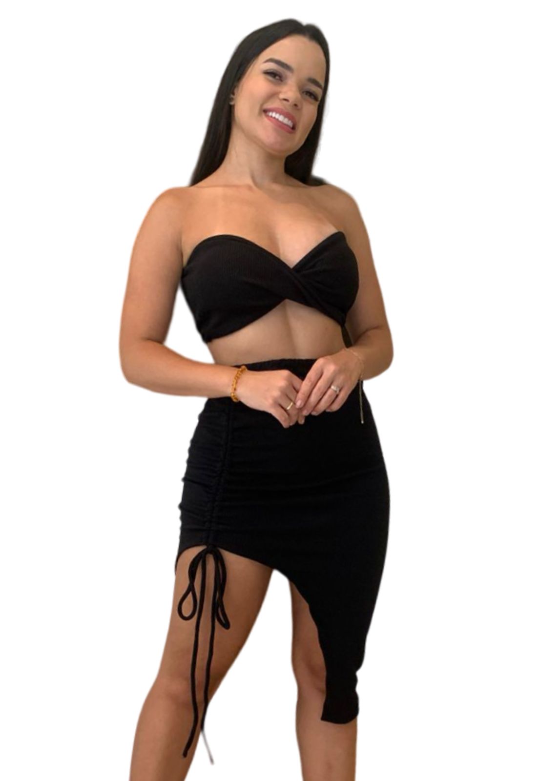 Conjunto Feminino Top Tomara Que Caia Com Saia !