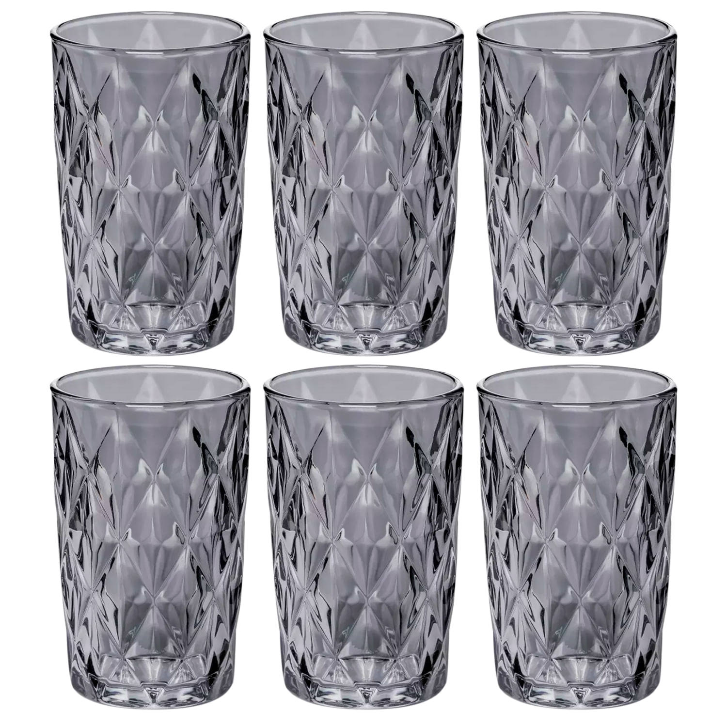 Conjunto Jogo 6 Copos De Vidro Diamond Alto Grande 390ml Linha Cristal Luxo Elegante