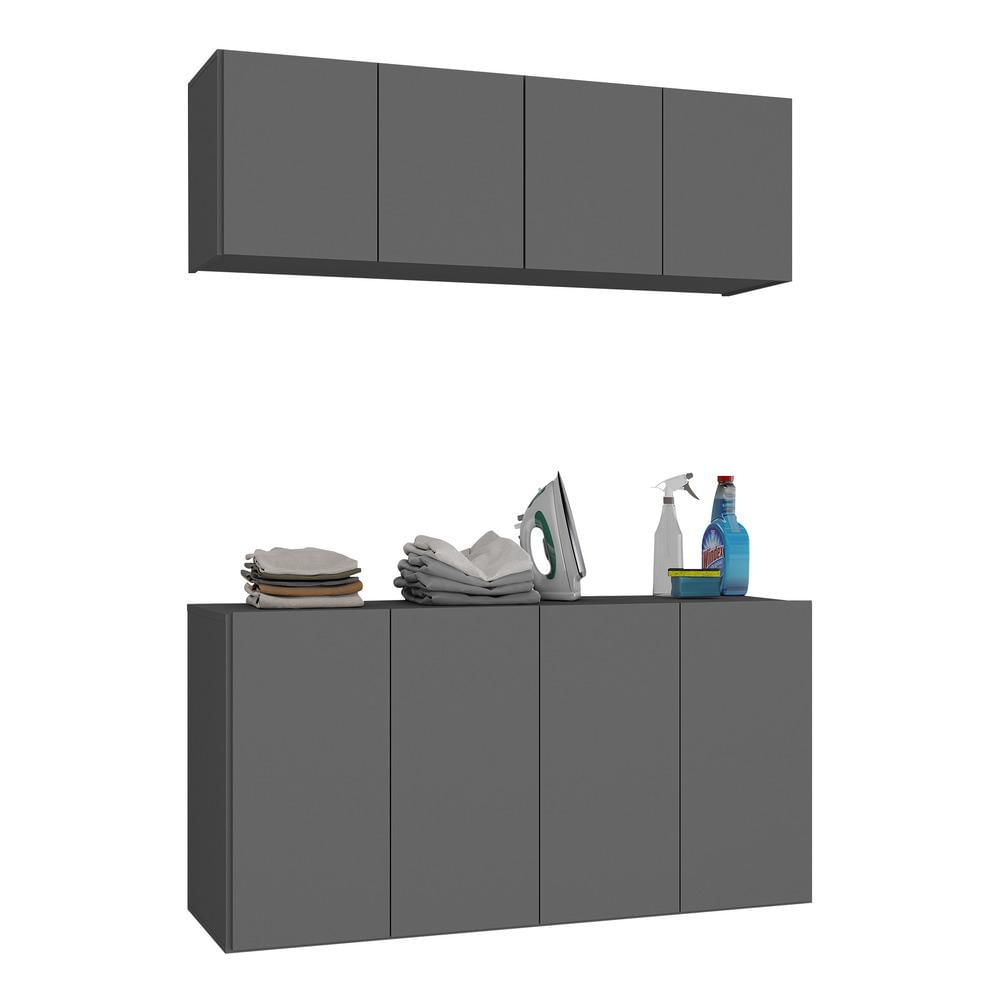 Conjunto Lavanderia Suspenso Multiuso Armário Aéreo E Balcão 4 Portas Multimóveis Mp5052 Branco
