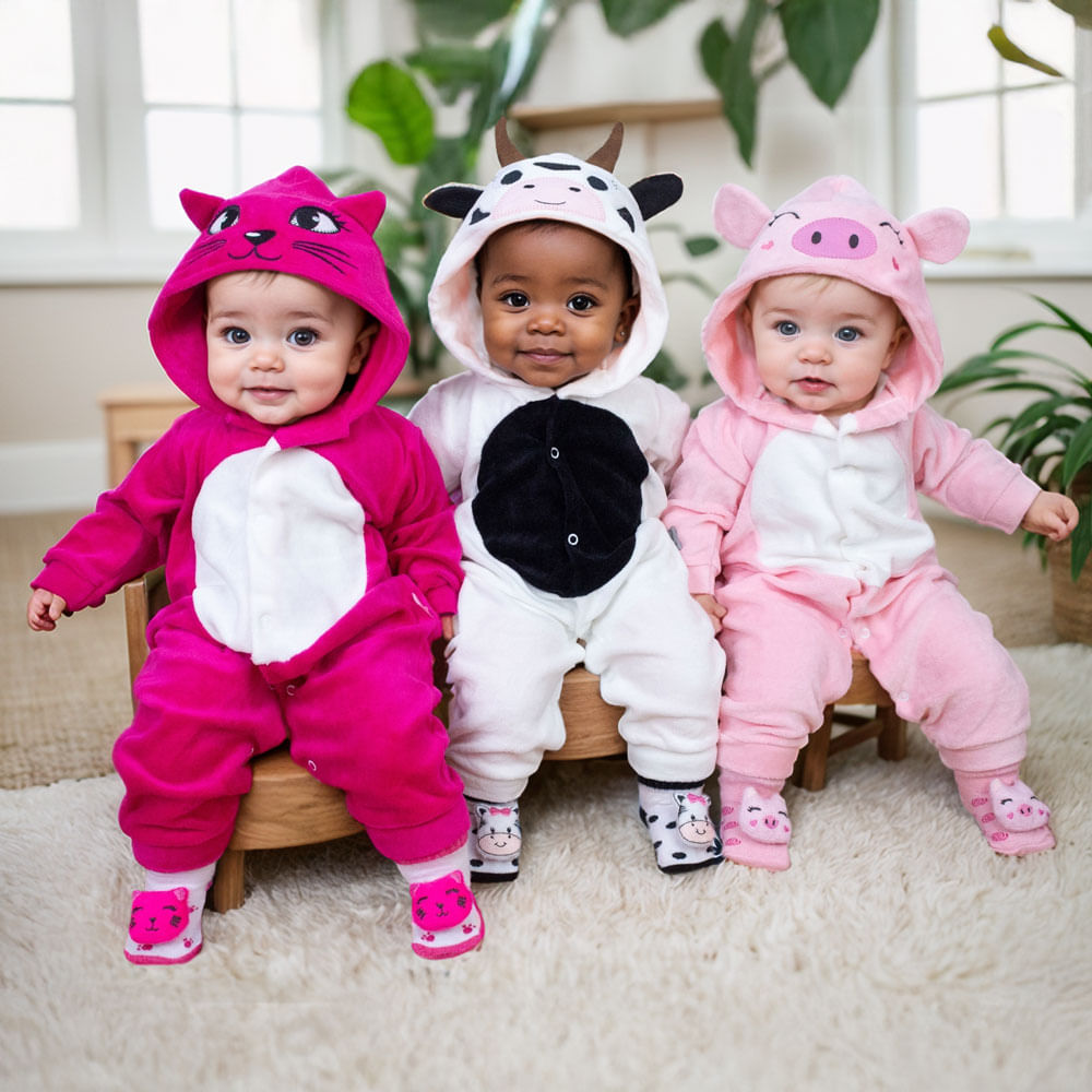 Conjunto Macacão Em Plush 3d E Pantufa Lúdica Para Bebê Menina