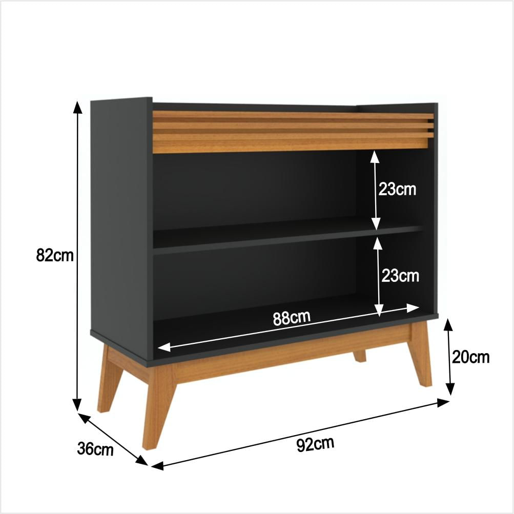 Conjunto Sala De Estar Buffet 2 Portas Ripado E Rack Para Tv Até 75 Polegadas - Vianossa - Preto/cedro