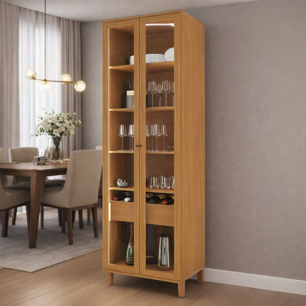A Cristaleira Com Led E Vidro Incolor 2 Portas Damasco Indekes É Ideal Para Valorizar A Decoração E Organizar Louças, Taças E Objetos Decorativos. Conta Com Duas Portas Em Vidro Incolor, Iluminação Em Led Que Destaca O Interior E Quatro Prateleiras Bem Distribuídas. A Estrutura Em Mdp Com Moldura Em Mdf Garante Resistência, Enquanto A Gaveta Com Corrediças Telescópicas Oferece Abertura Suave. Os Pés Com Regulagem Proporcionam Melhor Nivelamento Ao Ambiente.