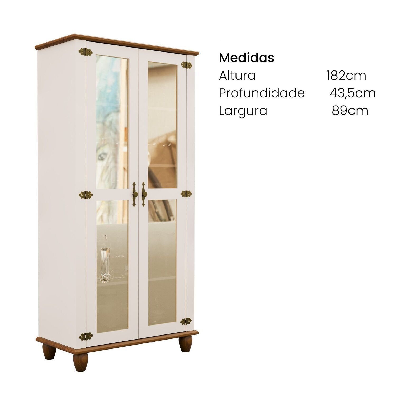 Cristaleira 2 Portas 89cmx182cm Madeira Maciça Tampo Base E Pés Em Joy Off White Off White