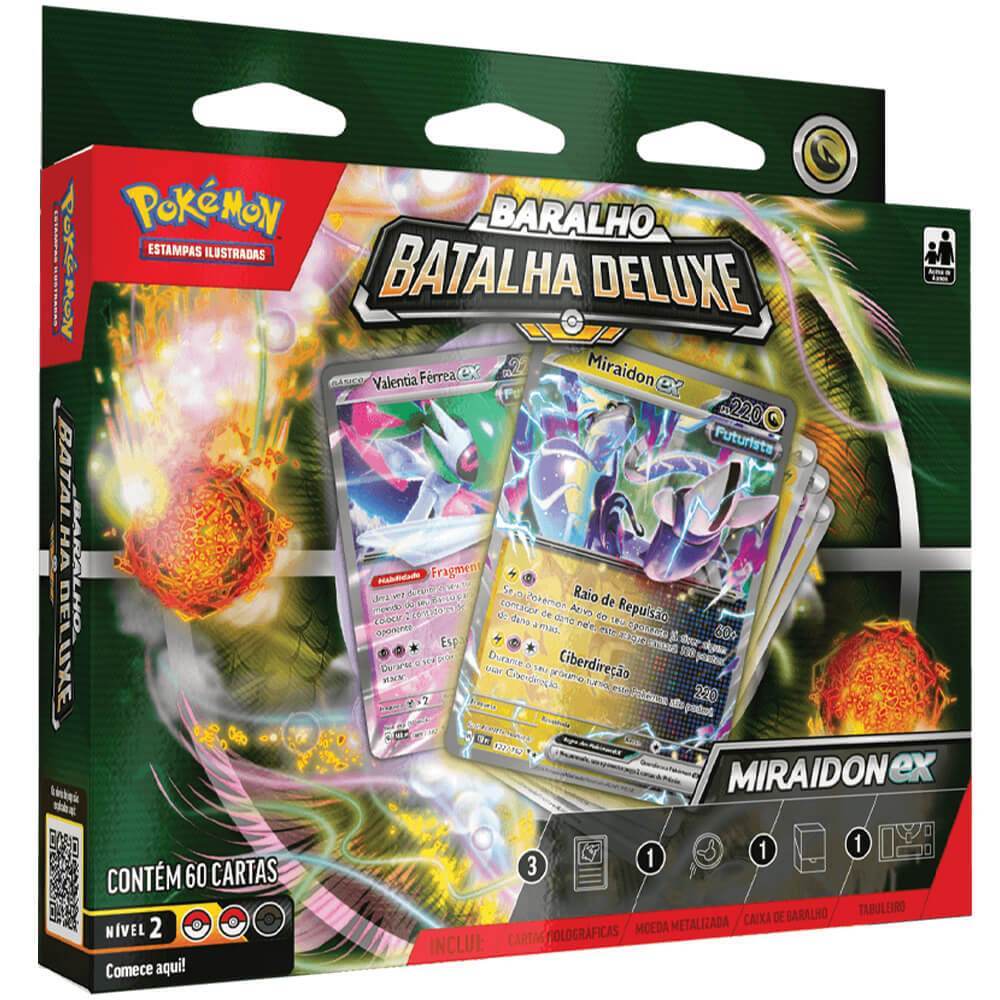 O Deck De Batalha Pokémon Tcg Deluxe Traz A Possibilidade De Escolher Entre Dois Baralhos Prontos Para Jogar: Koraidon E Miraidon. Cada Deck Inclui 60 Cartas, Uma Moeda Grande Metalizada, Tabuleiro Para Um Jogador, Contadores De Dano, Uma Caixa Para O Baralho, Guia De Estratégias E Uma Carta Codificada Para Jogar Online.