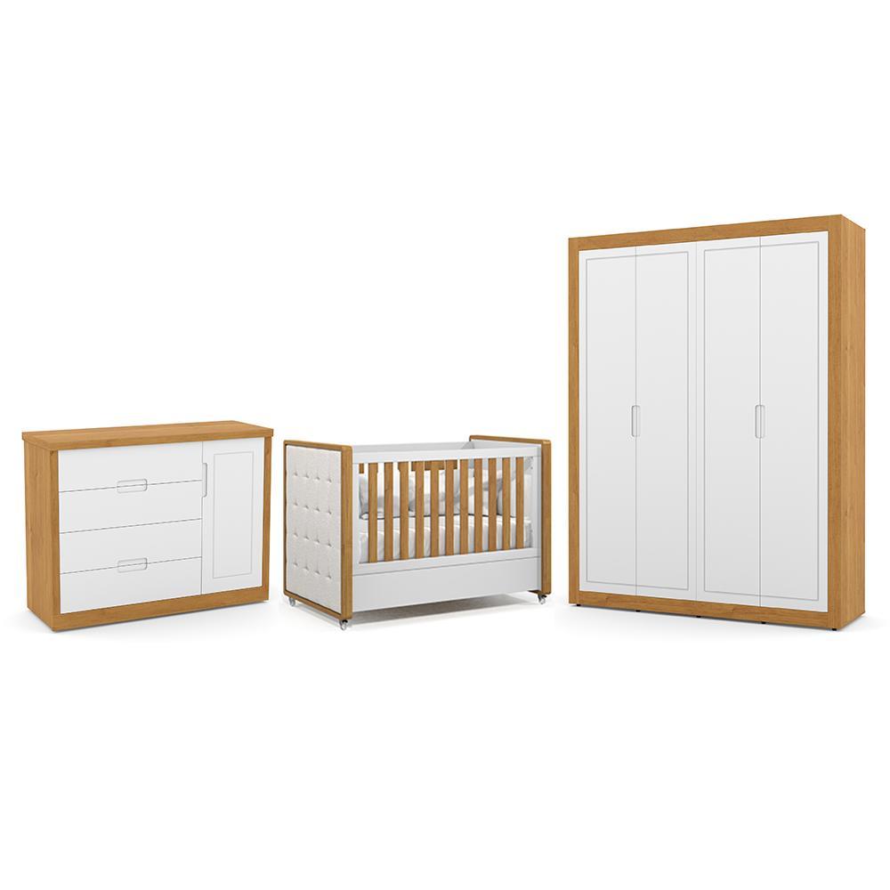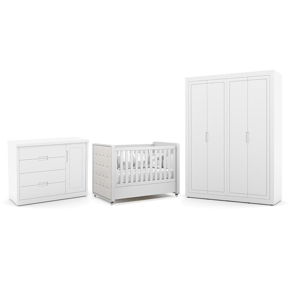 Dormitório Tutto New 4 Portas, Cômoda 1 Porta E Berço Off White Com Capitonê - Matic Móveis