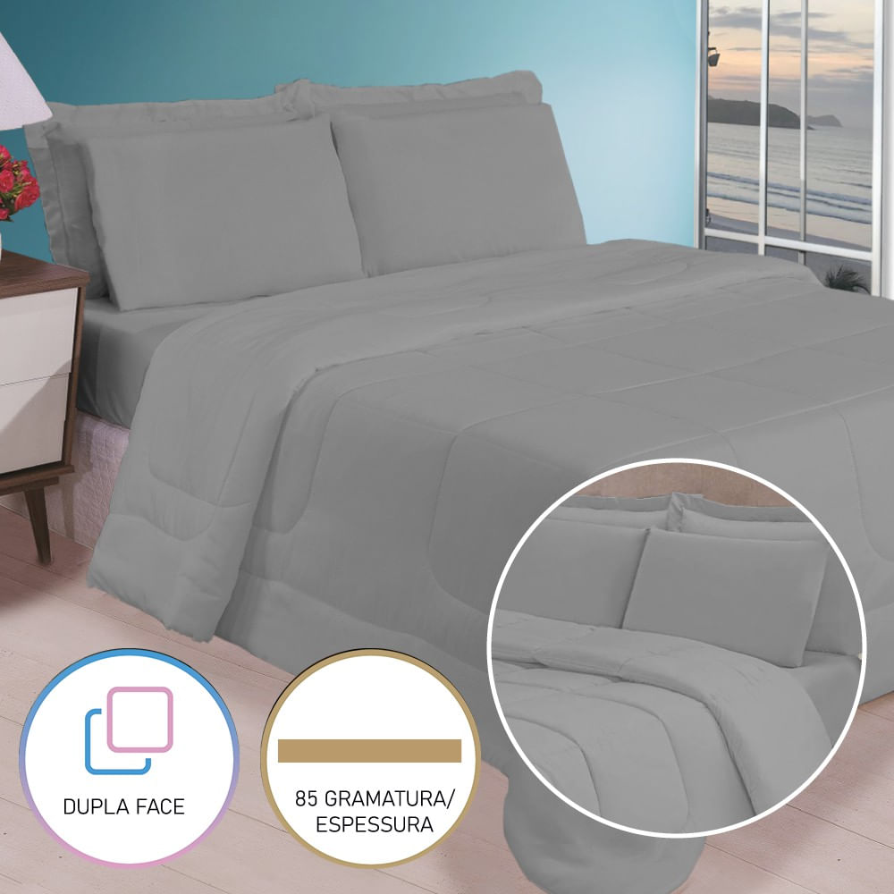 Edredom Casal Queen 5 Peças Leve Para Verão Função Cobre Leito Preto E Vermelho Casa Dona