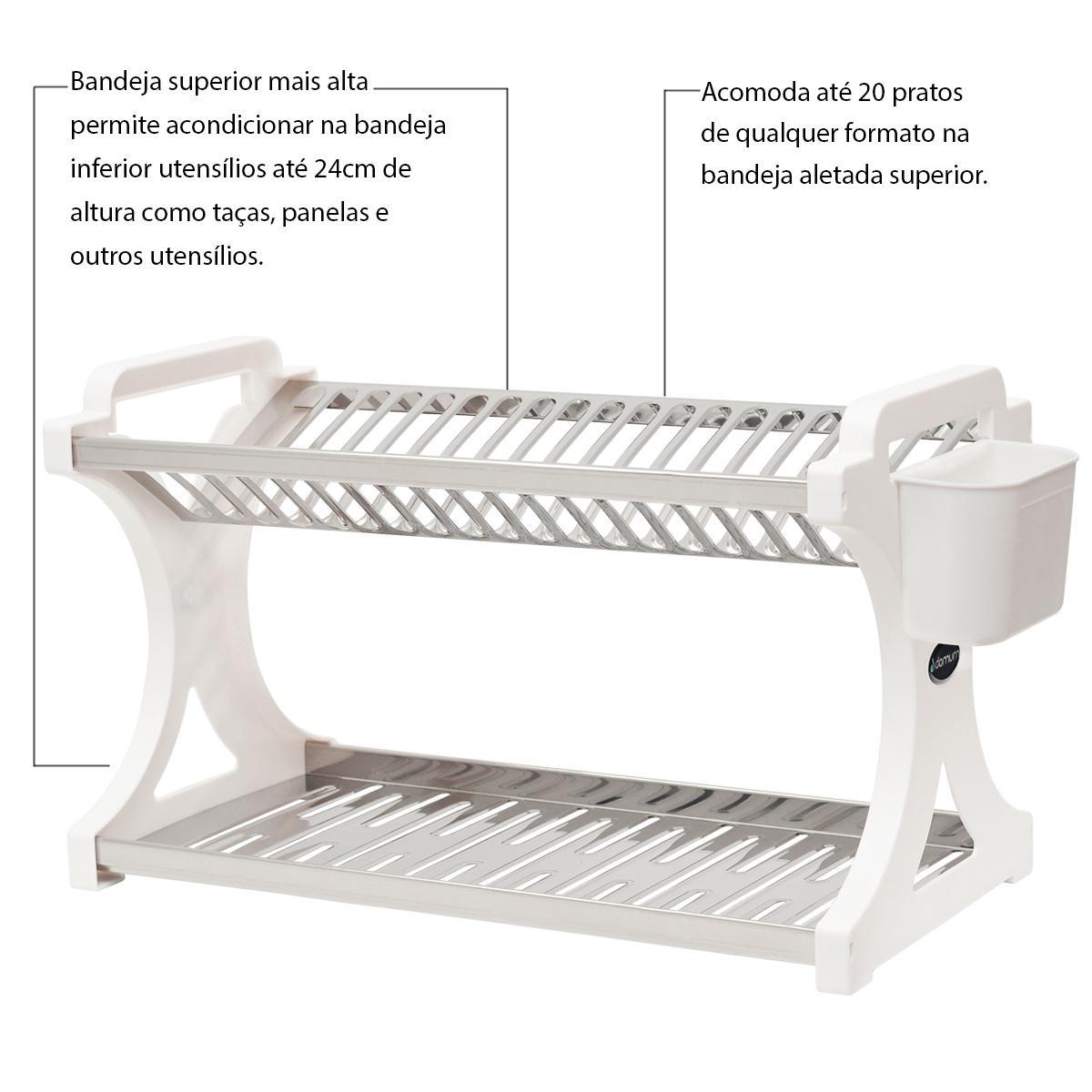 Escorredor De Pratos Alto Branco Inox 20 Pratos