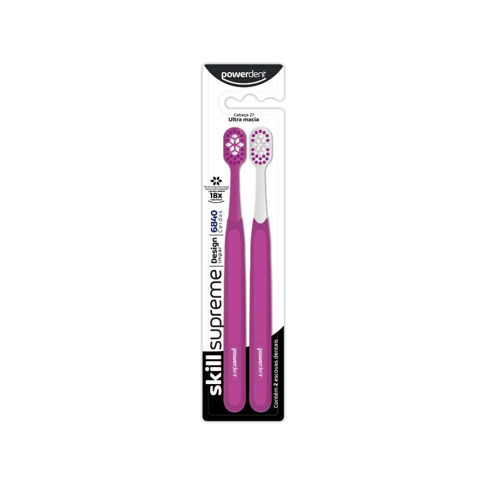 Nosso Pack Skill Supreme É Fantástico. Cada Escova Possui Um Mix De Cerdas Ultra Macias Totalizando 6840 Cerdas. A Escova De Dentes Skill Supreme, Possui Um Design Único, Cerdas Com Pontas Afuniladas, 18 Vezes Mais Finas Que As Cerdas Tradicionais E Também Cerdas Arredondadas Proporcionando Uma Escovação Profunda, Atingindo Diversas Áreas Da Boca Com Mais Suavidade. Alcança Até As Áreas Mais Difíceis Entre Os Dentes E A Gengiva. Com Cabo Reto E Texturizado Que Facilita Os Movimentos Da Escovação. Como Usar: Passo 1: Coloque Uma Pequena Quantidade De Creme Dental Sobre As Cerdas Da Escova. Passo 2: Posicione A Escova Em Um Ângulo De 45 Na Linha Da Gengiva. Passo 3: Mova A Escova Em Movimentos Para Frente E Para Trás, Repita Isso Em Cada Dente. Passo 4: Utilize A Ponta Da Escova Para Escovar Atrás De Cada Dente, Com Movimentos Superiores E Inferiores. Passo 5: Para Uma Boca Ainda Mais Saudável, Complemente Sua Escovação Com A Fita Dental Classictape Da Powerdent. Fique Atento: Trocar A Escova Dental A Cada Três Meses Mantém Sua Boca Livre De Bactérias. Escova Ultra Macia, Não Colocar Pressão Excessiva Durante A Escovação. Informações Importantes: Visite Seu Dentista Regularmente, Ele Indicará O Melhor Tipo De Escova Para Você. Mantenha O Produto Fora Do Alcance De Crianças. Declarado Isento De Registro Pelo Ministério Da Saúde. Não Compre Se A Embalagem Estiver Violada. Conserve Em Local Limpo, Fresco E Seco. Composição: Resinas Termoplásticas, Poliéster (pbt), Âncoras Metálicas E Pigmentos. Fabricado Na: Rpc