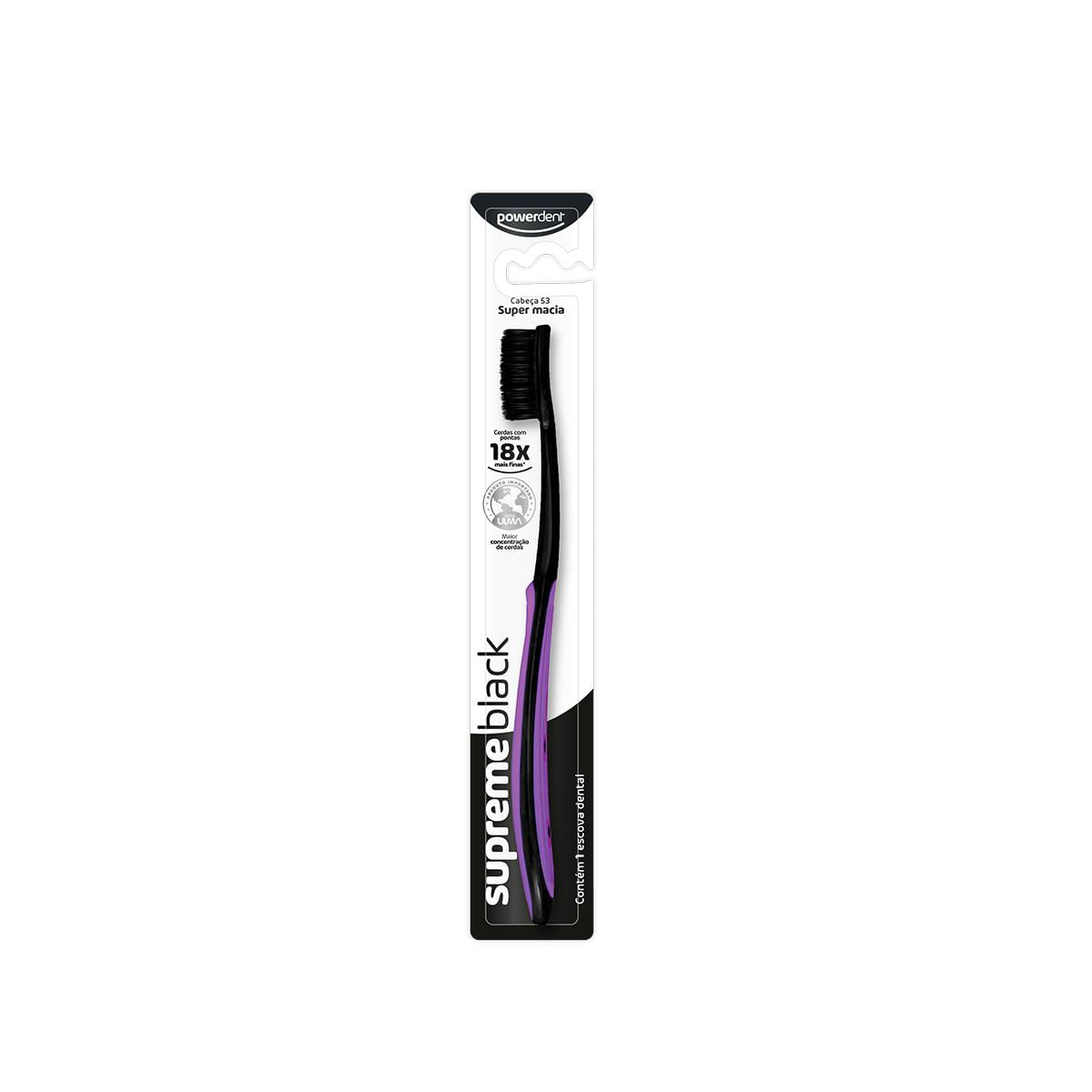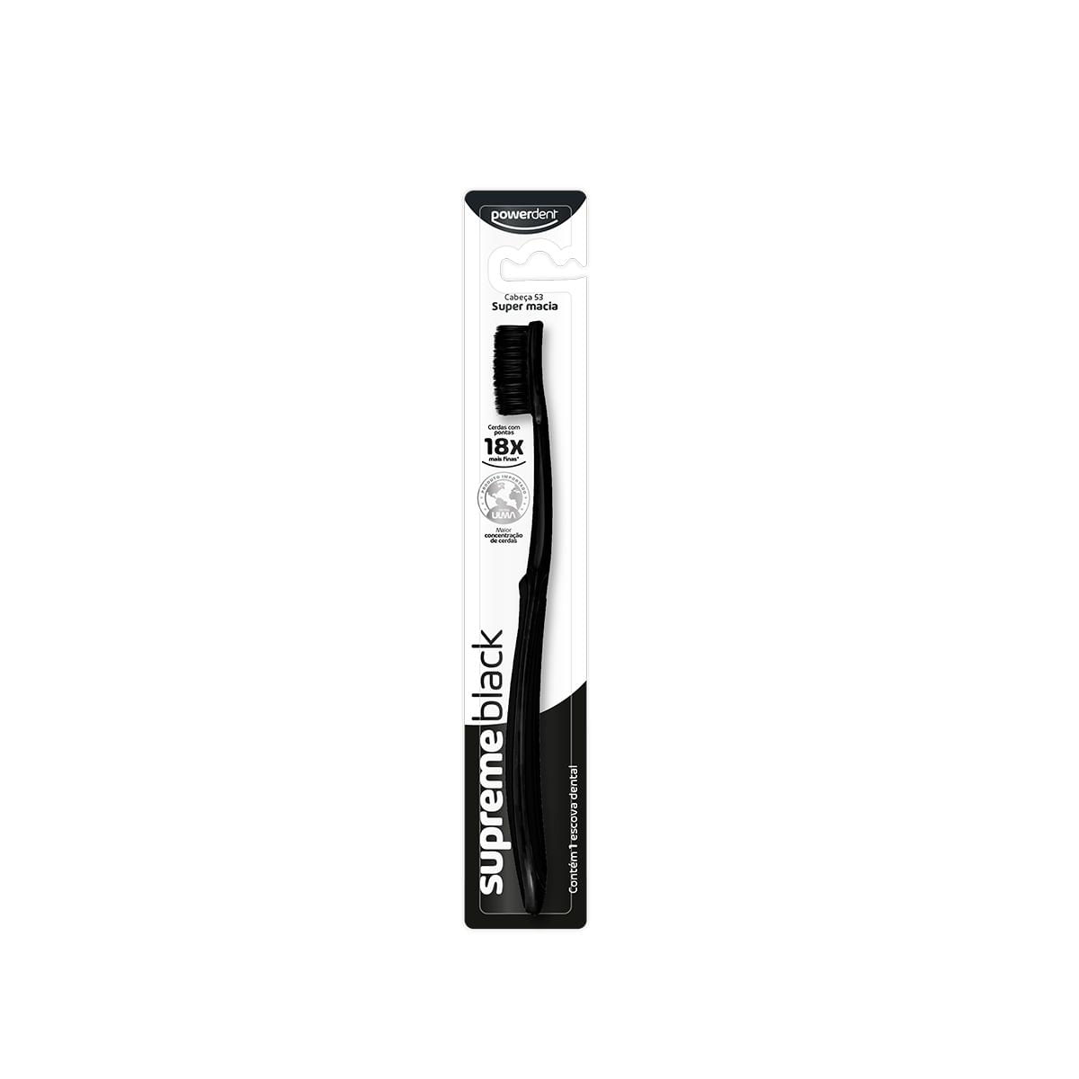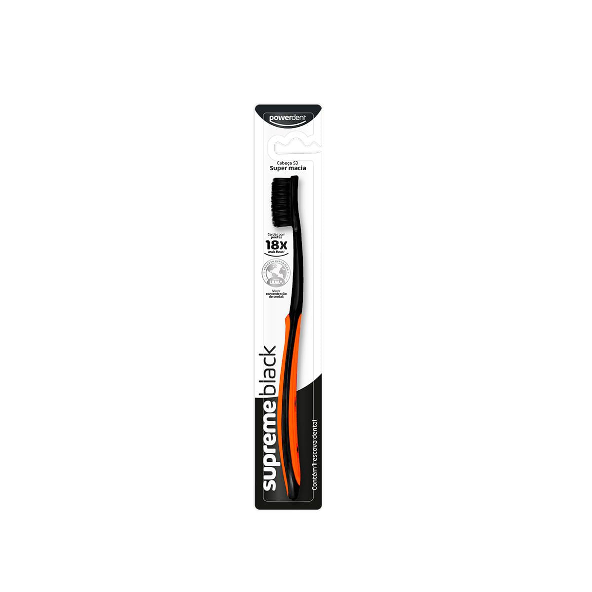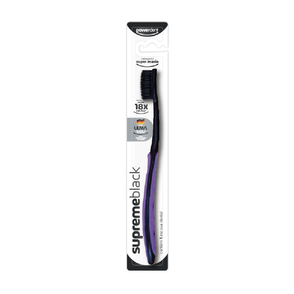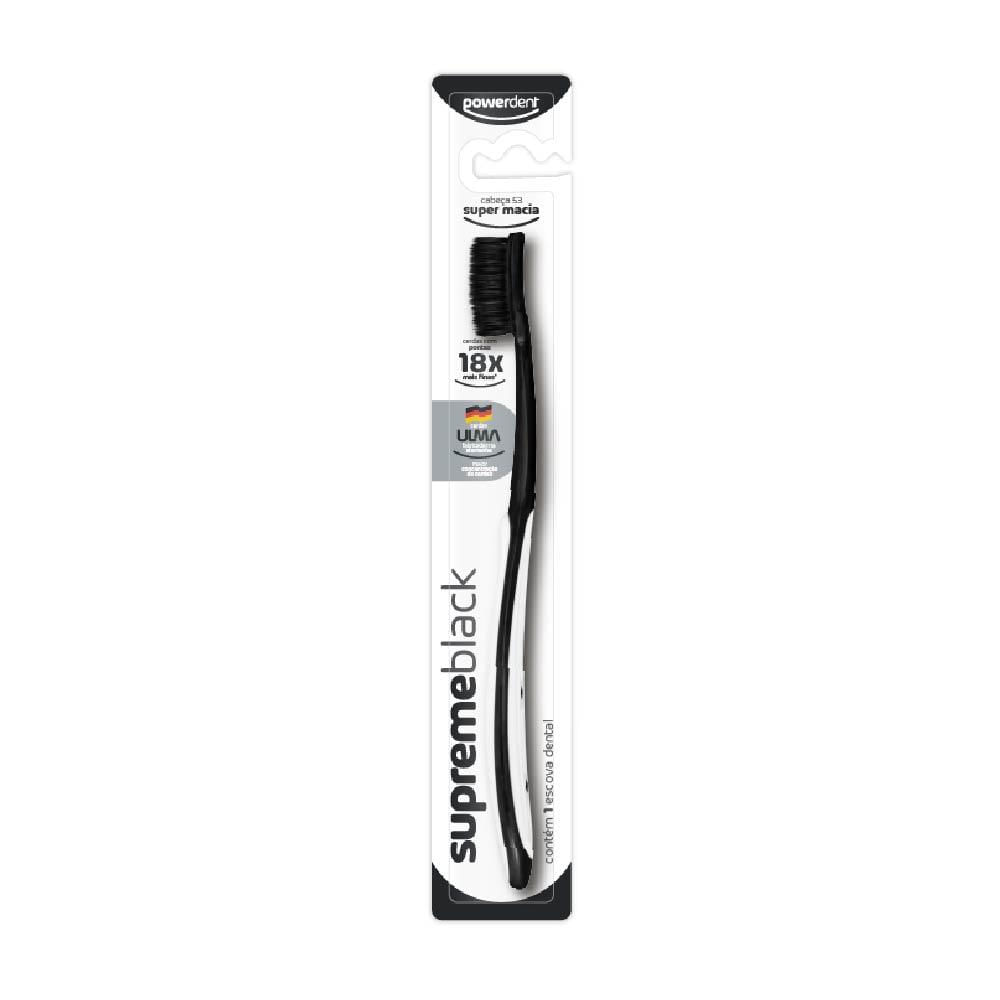 Com Suas Excepcionais Cerdas Ulma, De Pontas Ultra Finas, A Escova Supremeblack Proporciona Uma Escovação Suave E Limpeza Profunda. Alcança Até As Áreas Mais Difíceis Entre Os Dentes E A Gengiva.como Usar: Passo 1: Coloque Uma Pequena Quantidade De Creme Dental Sobre As Cerdas Da Escova.passo 2: Posicione A Escova Em Um Ângulo De 45 Na Linha Da Gengiva. Passo 3: Mova A Escova Em Movimentos Para Frente E Para Trás, Repita Isso Em Cada Dente.passo 4: Utilize A Ponta Da Escova Para Escovar Atrás De Cada Dente, Com Movimentos Superiores E Inferiores. Passo 5: Para Uma Boca Ainda Mais Saudável, Complemente Sua Escovação Com A Fita Dental Classictape Da Powerdent.fique Atento: Trocar A Escova Dental A Cada Três Meses Mantém Sua Boca Livre De Bactérias. Escova Super Macia, Não Colocar Pressão Excessiva Durante A Escovação.informações Importantes:visite Seu Dentista Regularmente, Ele Indicará O Melhor Tipo De Escova Para Você. Mantenha O Produto Fora Do Alcance De Crianças. Declarado Isento De Registro Pelo Ministério Da Saúde. Não Compre Se A Embalagem Estiver Violada. Conserve Em Local Limpo, Fresco E Seco. *comparada As Escovas Normais, Com Pontas Arredondadas.composição: Resinas Termoplásticas, Elastômero, Cerdas De Polibutileno Tereftalato - Pbt, Âncoras Metálicas E Pigmentos.