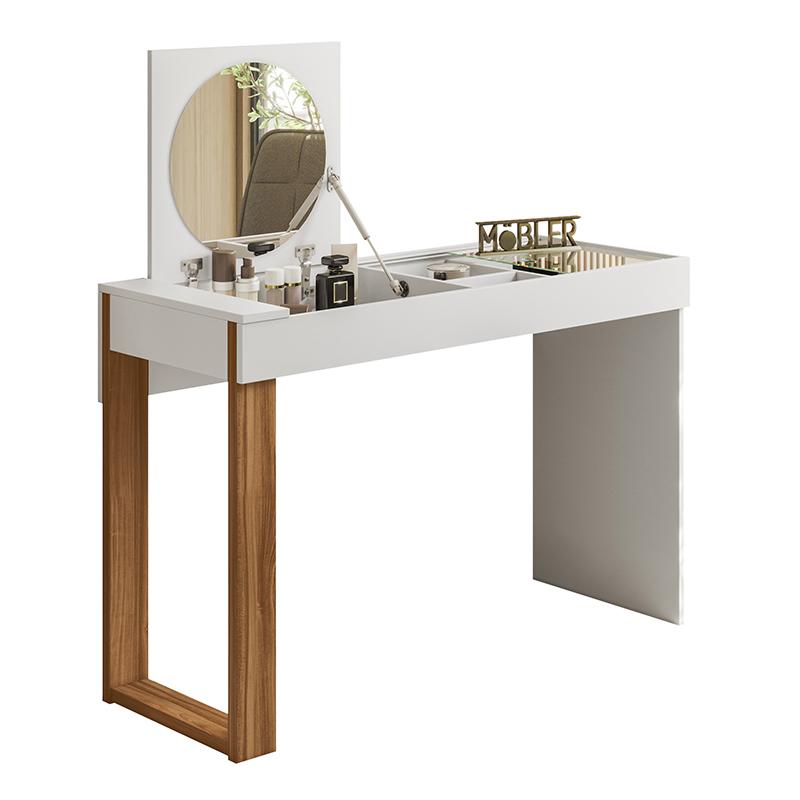 Escrivaninha Penteadeira Play Espelho Basculante E Vidro Branco Fosco