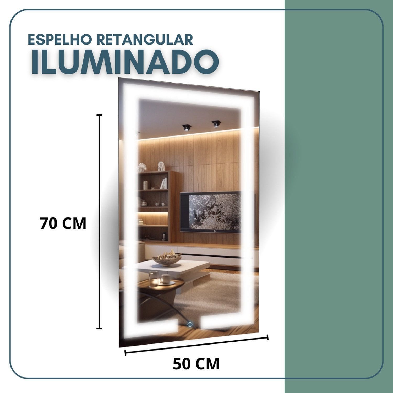 O Espelho Iluminado 70x50cm Une Design Moderno E Funcionalidade, Sendo Ideal Para Banheiros, Lavabos, Penteadeiras E Closets. Possui Iluminação Led Embutida Em 3 Temperaturas (quente, Neutra E Fria), Oferecendo A Luz Ideal Para Maquiagem, Autocuidado E Uso Diário. Seu Acabamento Sem Moldura Traz Sofisticação Ao Ambiente E Se Adapta A Diversos Estilos De Decoração. Conta Com Botão Touch Integrado, Baixo Consumo De Energia E Instalação Prática, Como Um Quadro Na Parede.