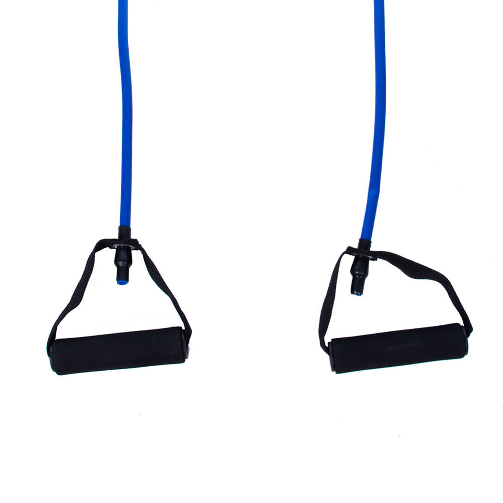 Extensor Elástico para Exercícios - Intensidade Médio. O extensor elástico ajuda a tonificar e definir a musculatura sem exageros, tonificar a musculatura profunda do abdômen, deixar sua coluna mais forte e flexível. Especificações Técnicas do Extensor Elástico para Exercícios: Material: Látex, que garante maior durabilidade sem perder a elasticidade, Comprimento do elástico: 130 cm, Comprimento do elástico com pegador: 150 cm, Tensão: Médio, Largura do puxador: 12cm revestido com espuma, Tensão de força: até 11 Kg.
