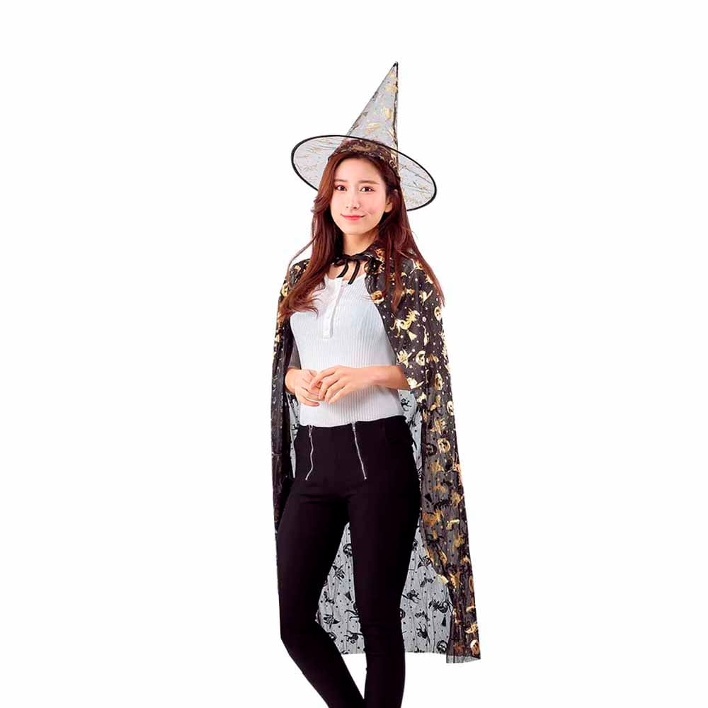 Fantasia Kit Bruxo Adulto Capa E Chapéu Bruxa Bruxinha Feiticeiro Mago Halloween Cosplay Dia Das Bruxas Sexta Feira 13