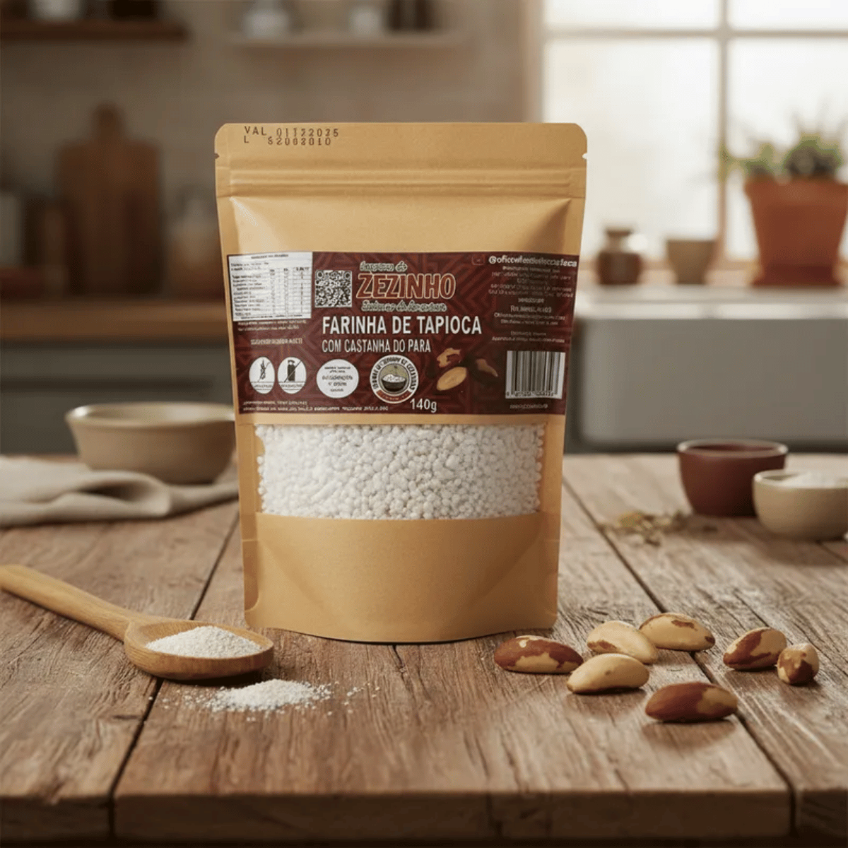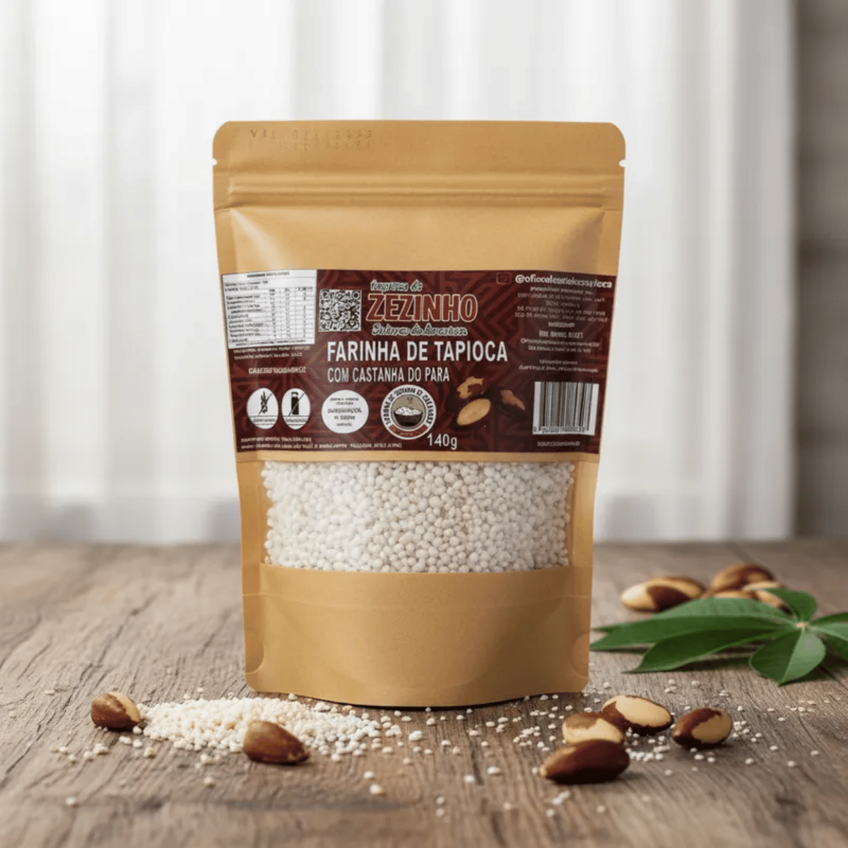 A Farinha de Tapioca com Castanha-do-Pará combina a crocância da tapioca com o sabor marcante e levemente amanteigado da castanha amazônica. Uma escolha sofisticada para elevar receitas com textura e aroma diferenciados.