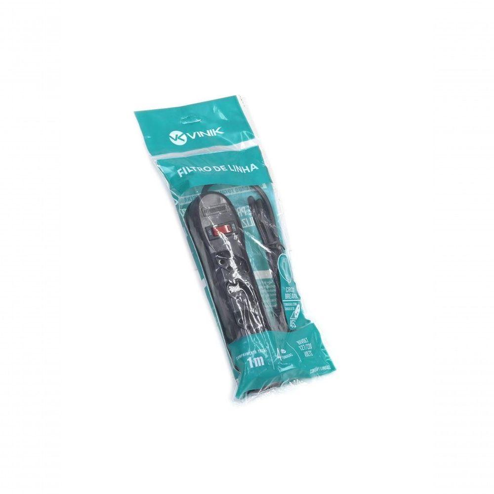 Filtro De Linha 4 Tomadas Pp 0,75mm Comprimento 1mtfiltro De Linha 4 Tomadas Pp 0,75mm Comprimento 1mt Descrição Precisa Ligar Vários Aparelho E Tem Só Uma Tomada? O Filtro De Linha Vinik É Uma Solução Para Quem Tem Vários Aparelhos Juntos, Como: Computador, Monitor, Caixa De Som, Impressora, Modem, Switch Ou Na Sala, Para Tv, Home Theater, Dvd, Receptor De Tv E Dispõe De Apenas Uma Tomada Para Ligar Tudo Isso. Possui Também Botão On/off E Conectores Com O Padrão Brasileiro De Três Pinos, De Acordo Com A Norma Nbr 14136. Dados Técnicos 4 Tomadas Tripolar Com Novo Padrão Brasileiro (nbr 14136), Corrente Máxima: 10a, Entradas Bivolt: 127/220v, Possui Proteção Contra Sobre Tensão, Tensão Máxima: 250v~, Certificação: Cabo Certificado Conforme Nbr Nm 247-5, Plug E Tomada Certificados Conforme Nbr 14136 E Nbr Nm 60884-1, Cor: Preto, Construção: Condutor: Cobre Nu / Pvc, Tomada: Injetada Em Polipropileno Com Terminais Em Latão, Plug: Injetado Em Pvc Com Terminais Em Latão, **comprimento Do Produto 1 Metro (cabo + Filtro De Linha)**filtro De Linha 4 Tomadas Pp 0,75mm Comprimento 1mt Descrição Precisa Ligar Vários Aparelho E Tem Só Uma Tomada? O Filtro De Linha Vinik É Uma Solução Para Quem Tem Vários Aparelhos Juntos, Como: Computador, Monitor, Caixa De Som, Impressora, Modem, Switch Ou Na Sala, Para Tv, Home Theater, Dvd, Receptor De Tv E Dispõe De Apenas Uma Tomada Para Ligar Tudo Isso. Possui Também Botão On/off E Conectores Com O Padrão Brasileiro De Três Pinos, De Acordo Com A Norma Nbr 14136. Dados Técnicos 4 Tomadas Tripolar Com Novo Padrão Brasileiro (nbr 14136), Corrente Máxima: 10a, Entradas Bivolt: 127/220v, Possui Proteção Contra Sobre Tensão, Tensão Máxima: 250v~, Certificação: Cabo Certificado Conforme Nbr Nm 247-5, Plug E Tomada Certificados Conforme Nbr 14136 E Nbr Nm 60884-1, Cor: Preto, Construção: Condutor: Cobre Nu / Pvc, Tomada: Injetada Em Polipropileno Com Terminais Em Latão, Plug: Injetado Em Pvc Com Terminais Em Latão, **comprimento Do Produto 1 Metro (cabo + Filtro De Linha)**
