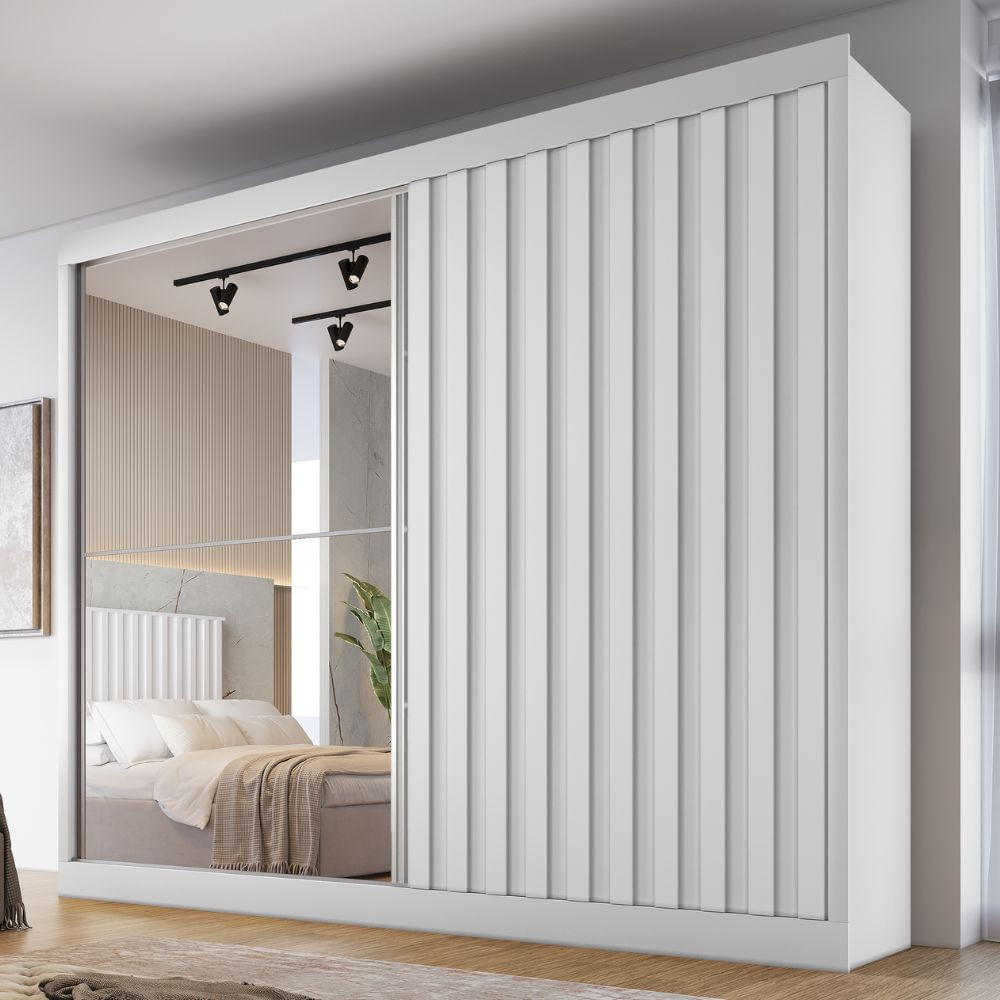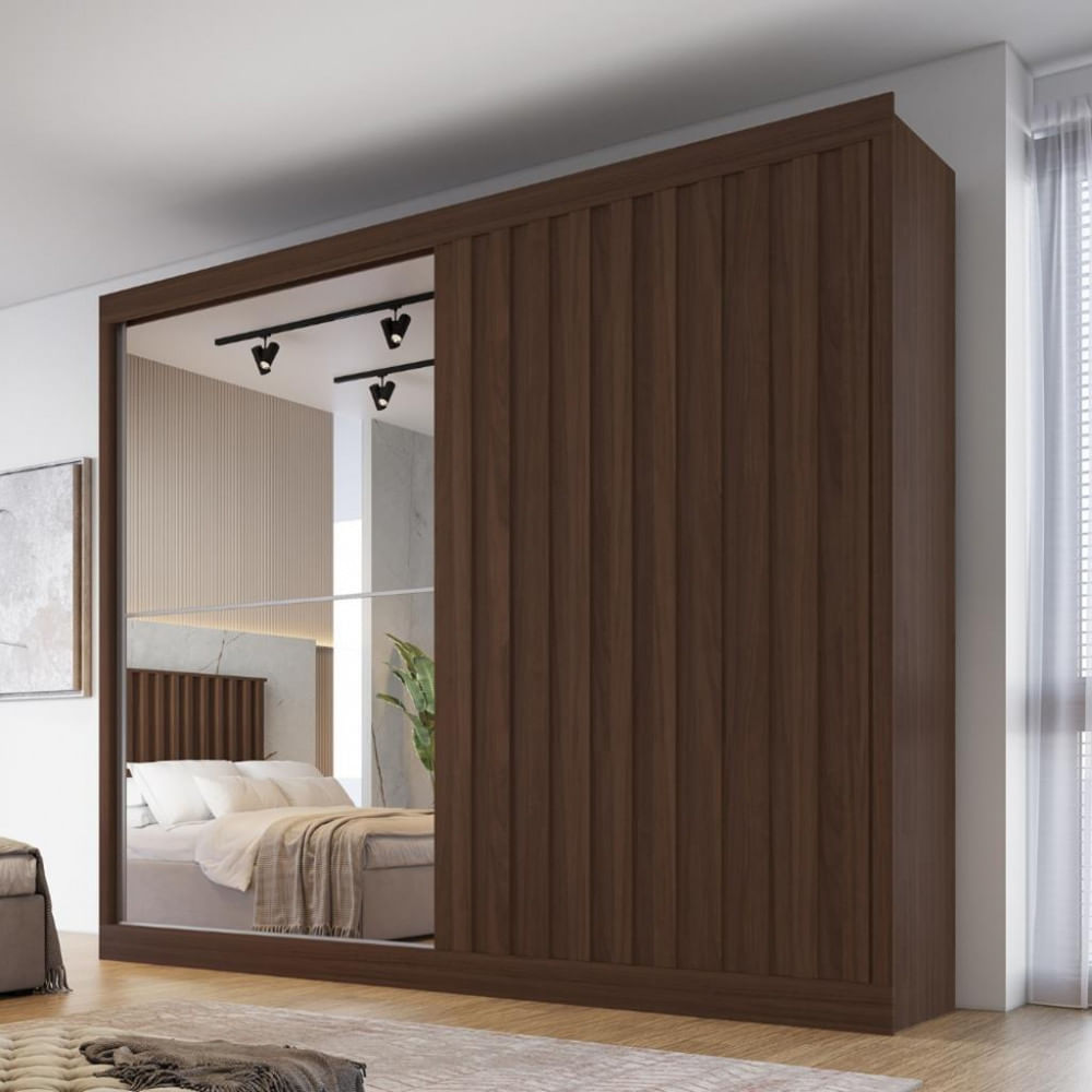 Itens InclusosGuarda Roupa Casal Ripado com Espelho 2 Portas de Correr em MDF Atlanta Made Marcs