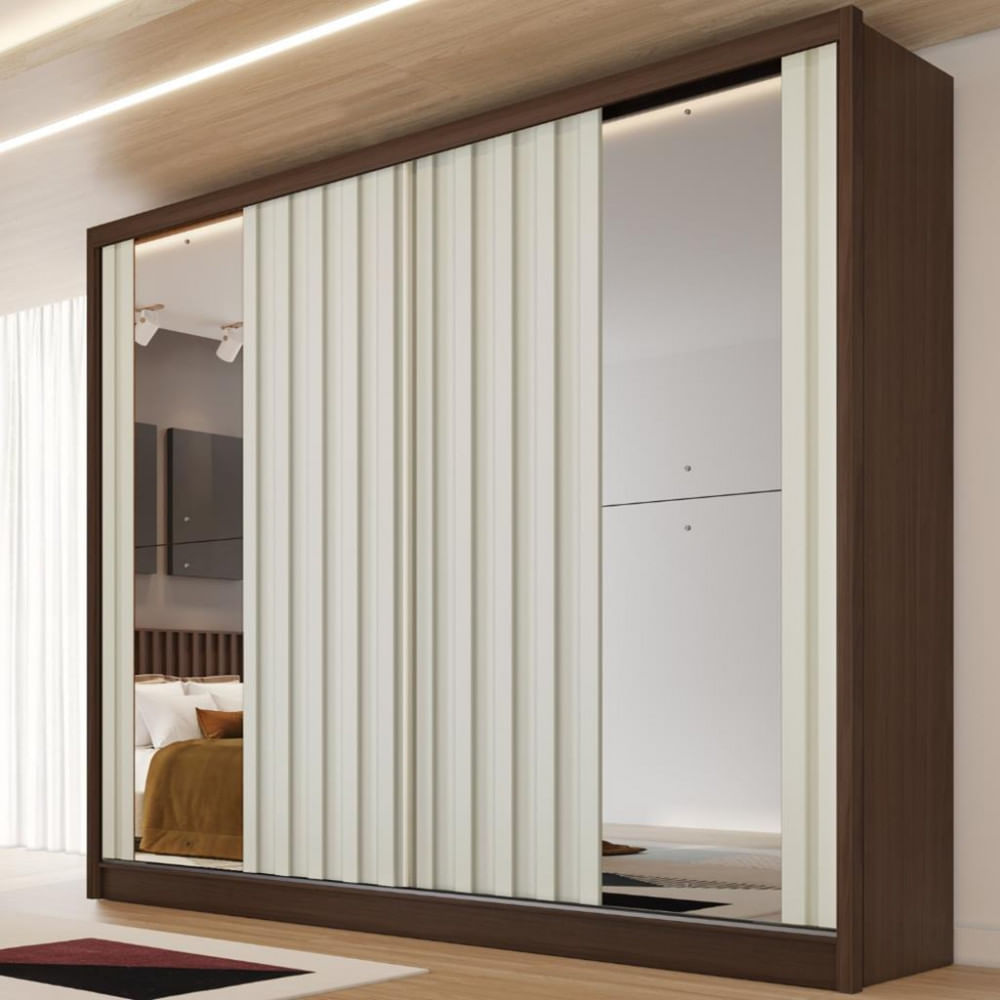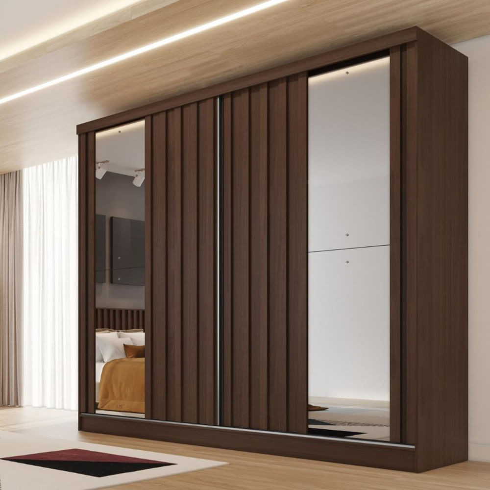 Guarda Roupa Casal Com Espelho 2 Portas De Correr 4 Gavetas Ripado Lugano Made Marcs