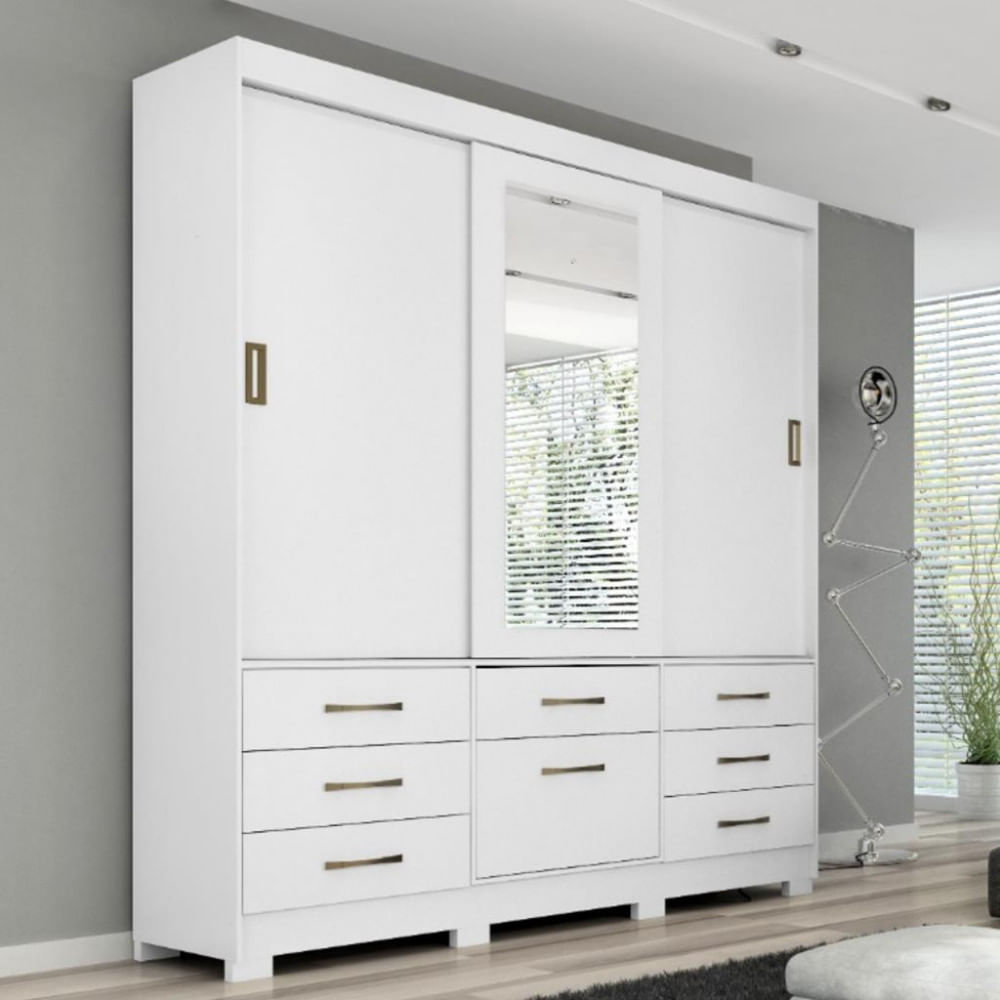 Guarda Roupa Casal com Espelho 3 Portas 8 Gavetas com Pés em MDF Luiza Panan