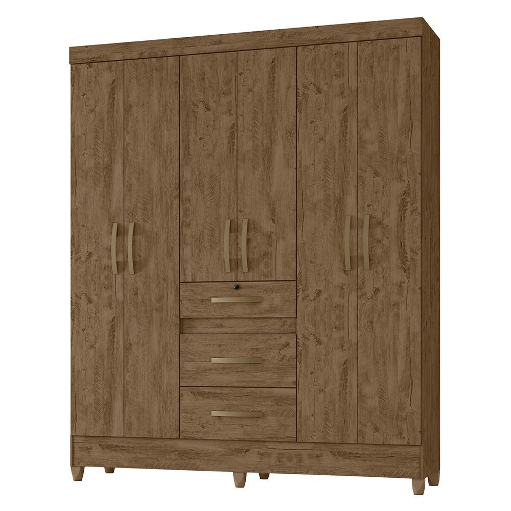 Guarda Roupa Casal Itatiba 6 Portas E 3 Gavetas Castanho Wood/off White - Moval