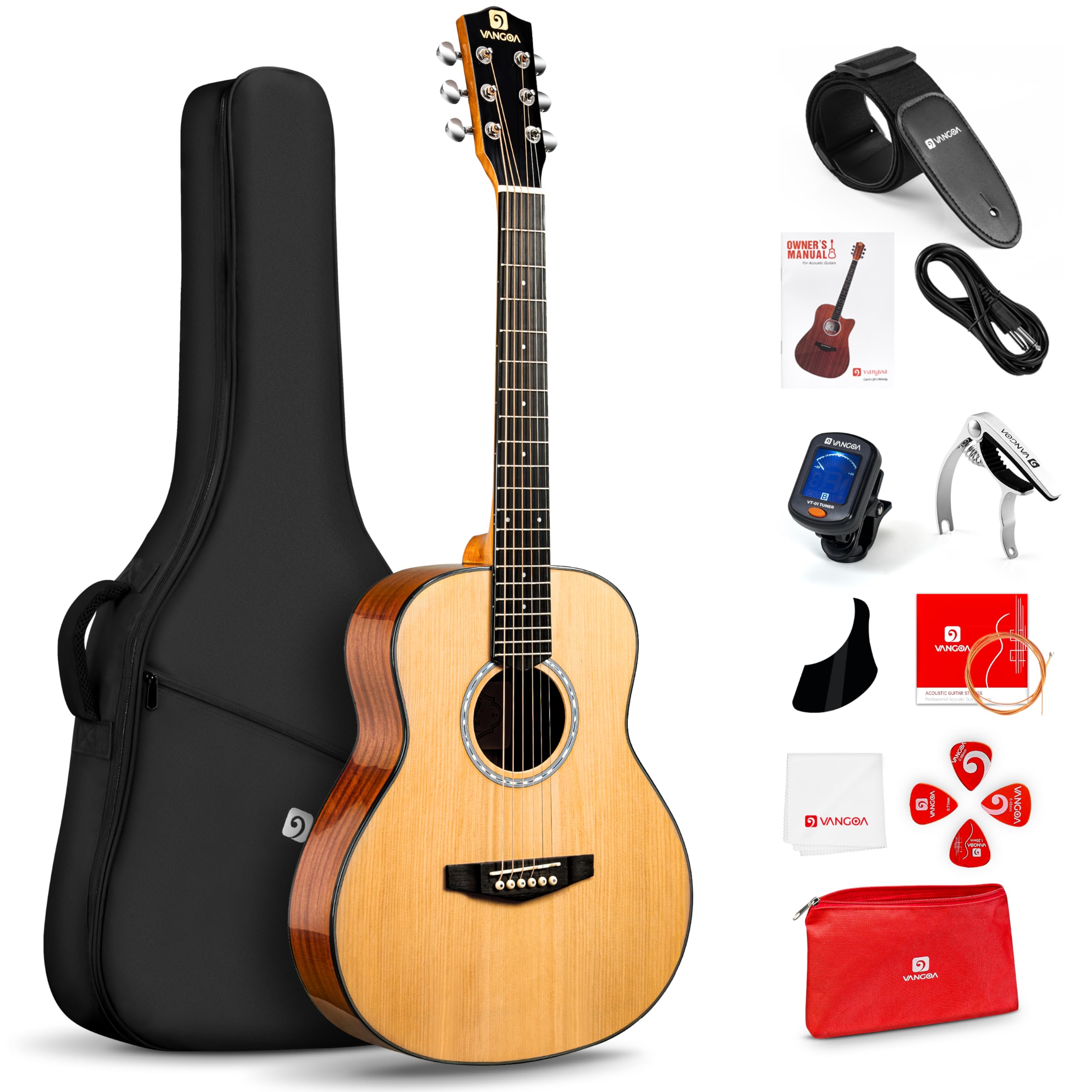 Guitarra Acústica Vangoa De 91 Cm Para Adultos Iniciantes - Conjunto De 91 Cm Acustica Para Iniciantes Com Gig Bag, Afinador, Correia, Cordas - Guitarra Clássica Natural ✔ [melhor Transmissão De Som] A Guitarra Acústica Vangoa Selecionou Madeira De Abeto Serrada Como Parte Superior Com Belo Grão De Madeira Firme E Excelente Estabilidade. O Acabamento De Laca Brilhante Mais Fino É Firme E Macio, O Que Não Apenas Facilita A Limpeza, Mas Também Ajuda A Estabilizar O Nível De Umidade E Minimizar A Perda De Som. A Vangoa Otimizou Profissionalmente A Espessura Da Parte Superior Para Torná-la Mais Fina Nas Bordas Da Parte Superior Para Melhor Vibração E Transmissão De Som ✔ [som Quente E Brilhante] As Laterais E Traseira Sapele Trazem A Você Um Tom Quente, Brilhante E Bem Equilibrado Com Ótima Ressonância E Som Excelente Em Frequência Média E Alta, Adequado Para Todos Os Estilos De Música. ✔ [construído Para Conforto] O Pescoço Fino Em Forma De C Tem Uma Fixação Confortável. 22 Trastes De Níquel Finamente Ralados Com Bordas Lisas Dão A Você Um Toque Confortável Ao Pressionar As Cordas. O Design Cortado Oferece Acesso Mais Fácil Aos Trastes Superiores. A Baixa Ação Da Corda Alivia A Dor De Um Longo Tempo De Jogo. ✔ [ajuste Rápido E Preciso] O Design Niquelado Selado Evita Que O Equipamento Seja Poeira E Erosão Líquida, Durável E Duradouro. As Engrenagens De Proporção 1:18 Melhoram A Precisão Do Ajuste E Não São Fáceis De Desafinar Após O Ajuste. Equipado Com Cordas De Bronze Fósforo Com Núcleo Hexagonal De Aço De Alto Carbono E Porca E Selim Ósseo, Vangoa Guitarra Acústica É Fácil De Ser Afinada E Segurar Após O Primeiro Ajuste Das Cordas ✔[kit Completo De Guitarra Iniciante] O Kit Inicial De Guitarra Acústica Vangoa 91.4 Cm Vem Com Todos Os Acessórios Que Você Precisa Para Começar, Incluindo Uma Bolsa Acolchoada, Alça De Ombro, Sintonizador De Clipe, Pano De Polimento, Pickguard Adesivo, Extra Cordas, Truss Rod Chave Allen, Capo E Três Palhetas De Guitarra De Espessura Diferente. Ideal Para Enviar Presentes E Implorar - ✅ Guitarra Acústica De Corda De Aço: Violão Acústico De 91 Cm Com Cordas De Aço Dará Ao Seu Violão Um Som Mais Brilhante E Metálico. Corpo Cortado De Tamanho Completo Para Um Tom Cheio E Vibrante, Adequado Para Todos Os Estilos De Música. O Tom Do Conjunto De Violão Acústico Da Vangoa É Perfeito Para Iniciantes - ✅som Quente E Equilibrado: Normalmente, Músicos Com Um Toque Mais Leve São Maravilhosos Em Uma Guitarra Spruce Top, Tocadores Com Estilo De Dedo Podem Tocar Facilmente. A Ação Adequada Da Corda Do Violão Acústico Cortado É A Melhor Escolha Quando Se Trata De Apresentações - ✅ Fique Sintonizado: Engrenagens De Proporção 1:18 Aprimoraram A Precisão Da Afinação E Equipadas Com Cordas De Bronze De Fósforo Com Núcleo Hexagonal De Aço De Alto Carbono E Porca E Selim Ósseo, Violão Acústico De 6 Cordas É Fácil De Aprender A Ser Afinado E Segurar Uma Melodia - ✅ Kit Completo Para Iniciantes: O Pacote Inclui O Violão Acústico De Corda De Aço Em Tamanho Real, Uma Bolsa De Violão, Três Palhetas De Espessura Diferente, Capo De Guitarra, Cordas De Guitarra, Uma Alça De Ombro, Um Conjunto Extra De Cordas E Um Manual Do Proprietário - ✅ Um Ótimo Presente: Este Violão Acústico Clássico É Projetado Com Um Corpo De Tamanho 3/4 Para Um Ajuste Confortável, Perfeito Para Músicos Iniciantes E Experientes. Vangoa – Nosso Violão Acústico De 91 Cm É Um Presente Atemporal