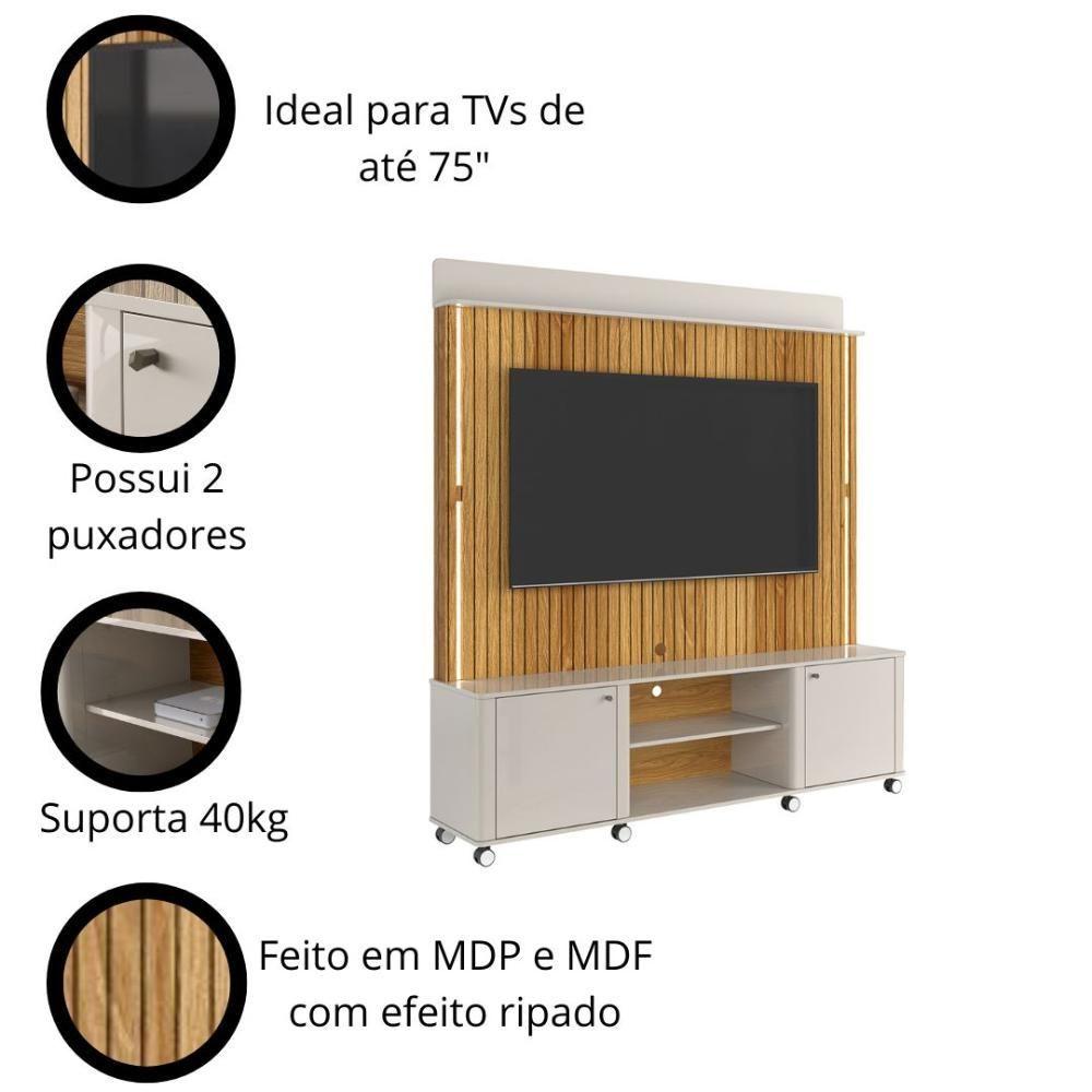 Home Florença - Até 75 Polegadas Mdf Led Ripado Off White Madeirado - Lukaliam Móveis