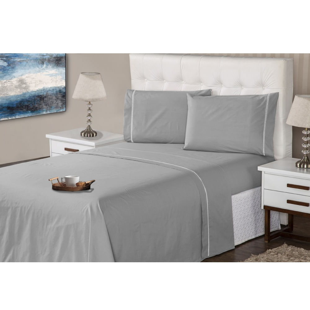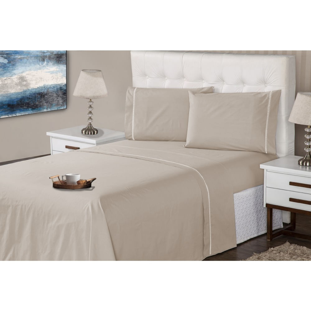 Jogo Lençol 4 Peças Casal 400 Fios Branco Ponto Palito Casa Dona