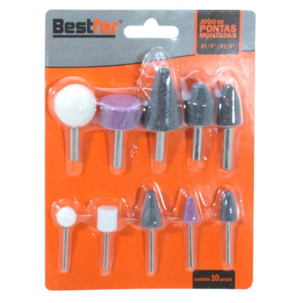 Produto: Jogo De Pontas Montadas 1/4", E 1/8", 10 Peç,as - Bfh3284 Marca: Bestfer Descriç,ã,o: O Jogo De Pontas Montadas Bfh3284 Da Bestfer é, Um Conjunto Essencial Para Usuá,rios Que Buscam Excelê,ncia Em Trabalhos De Desbaste, Polimento E Acabamento. Composto Por 10 Peç,as Variadas De Alta Qualidade, Este Kit é, A Escolha Perfeita Para Manipulaç,ã,o Detalhada Em Metais E Outras Superfí,cies Robustas.