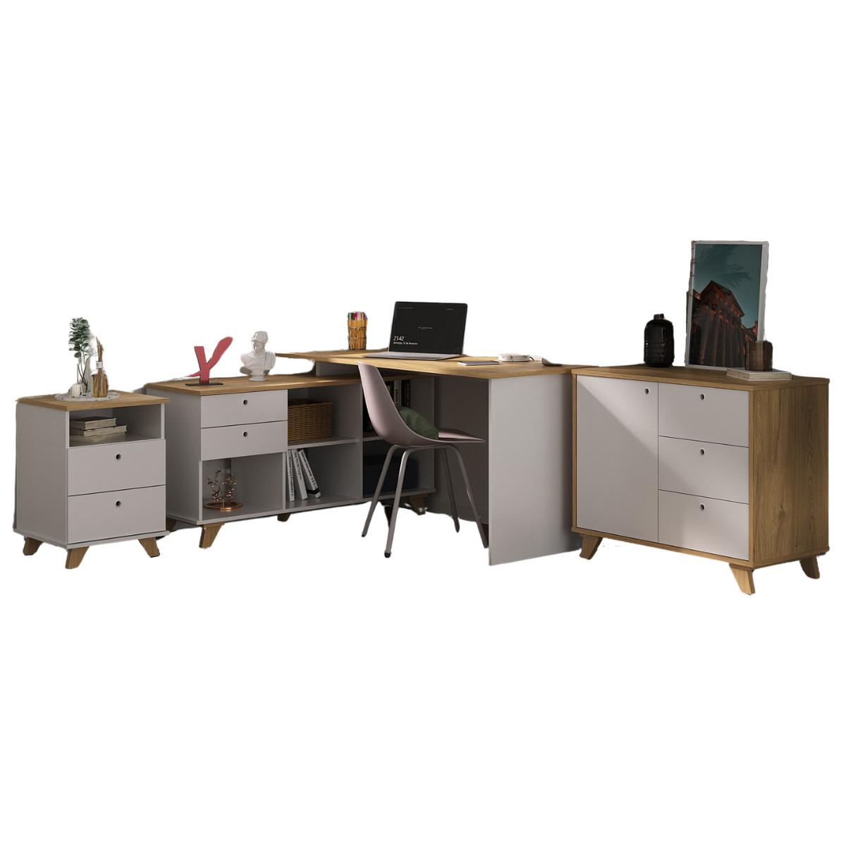 Esse Conjunto De Escritório É Ideal Para Quem Deseja Inovar O Ambiente De Maneira Simples E Sofisticada. A Escrivaninha É Feita Em Mdp, Pode Ser Montada No Formato Em L, Podendo Ser Montada Do Lado Direito Ou Esquerdo. O Gaveteiro É Feito Em Mdp, Possui Duas Gavetas Com Corrediças Metálicas E Um Nicho, Facilitando A Organização De Objetos, Celulares, Livros E Cadernos. Balcão Feito Em Mdp, Contém Uma Prateleira Interna Que Obtém Três Opções De Regulagem De Altura. Dimensão Da Escrivaninha: Altura: 75 Cm Largura: 145/128 Cm Profundidade: 45 Cm Informações Da Escrivaninha: Cor: Olmo/branco Nicho: Sim (5) Pés: Sim (4) Gavetas: Sim (2) Corrediças Metálicas. Puxadores: Sim (2)material Principal: Mdp 18mm Dimensões Do Gaveteiro: Altura: 63 Cm Largura: 45,2 Cm Profundidade: 45,2 Cm Informações Do Gaveteiro: Cor: Olmo/ Branco. Nichos: Sim (1) Gavetas: Sim (2) Corrediças Metálicas. Pés: Sim (4) Puxadores: Sim (2) Embutidos. Acabamento Em Bp. Material Principal: Mdp 25mm E 15mm. Dimensão Do Balcão: Altura: 75,3 Cm Largura: 90,5 Cm Profundidade: 45,4 Cm Informações Do Balcão: Cor: Olmo/branco Portas: Sim (1) Puxadores: Sim (4) Embutidos. Prateleiras: Sim (1) Regulagem De Altura Gavetas: Sim (3) Pés: Sim (4) Acabamento Em Bp. Material Principal: Mdp 25mm. Tens Inclusos: 1 Balcão 1 Escrivaninha 1 Gaveteiro Manual De Montagem Kit Completo Para Montagem E Manual De Instruções Garantia: 3 Meses Contra Defeito De Fabricação Informações Adicionais: - Fotos Meramente Ilustrativas Do Produto No Ambiente. - Os Objetos Que Ambientam As Fotos Não Acompanham O Produto, - Verificar Descrição E Tamanho Do Produto Antes Da Compra. - Avaliar A Mercadoria No Ato Do Recebimento E Recuse Em Caso De Divergência Ou Avarias. - Mantenha As Informações De Contato E Endereço De Entrega Atualizados Para Entrarmos Em Contato Caso Necessário. - Limpar Com Flanela Ou Pano Macio Seco, Não Utilizar Produtos Abrasivos, Desengordurantes, Álcool Ou Solvente. Não Expor O Produto Diretamente À Luz Solar E À Umidade. * Sugerimos A Contratação De Um Montador Profissional Para A Montagem Do Produto. Não Nos Responsabilizamos Por Avarias Causadas No Ato Da Montagem. * Não Nos Responsabilizamos Pela Montagem E Desmontagem Do Produto No Ato Da Entrega E Devolução, Assim Como Os Custos Gerados Nestas Situações. * A Transportadora Entregará O Produto No Andar Térreo Do Endereço De Entrega. * Não Nos Responsabilizamos Por Subir Escadas, Corredores E Elevadores Ou Transporte Por Guincho Em Apartamen