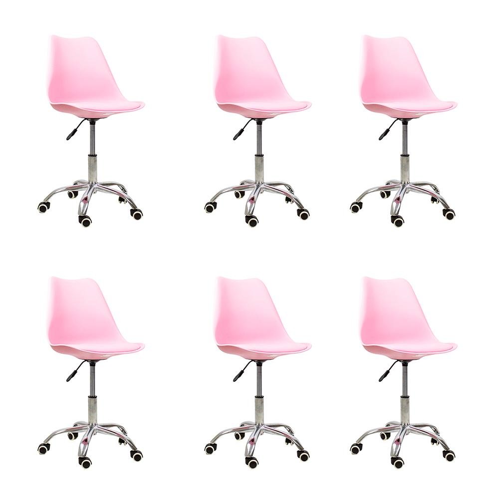 Kit 06 Cadeiras Office Base Cromada Giratória Saarinen - Branco