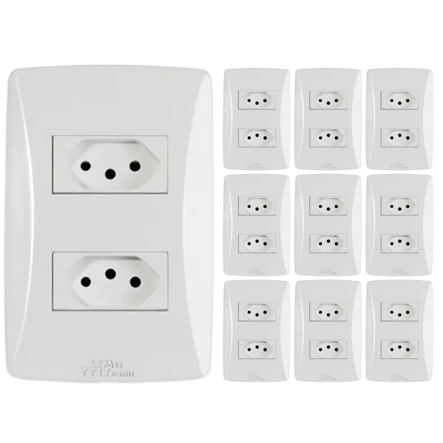 Kit 10 Tomada Dupla 2p+t 10a/250v Horizontal Branca Luxo