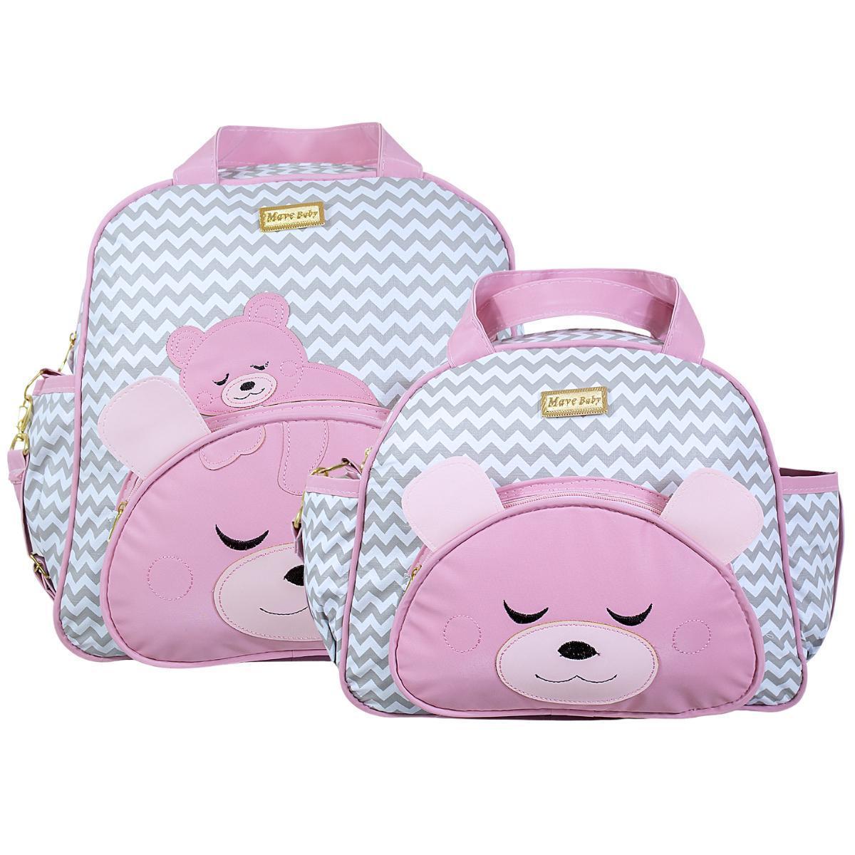 Kit Bolsas Maternidade Mave Baby Bear Premium Cinza E Rosa