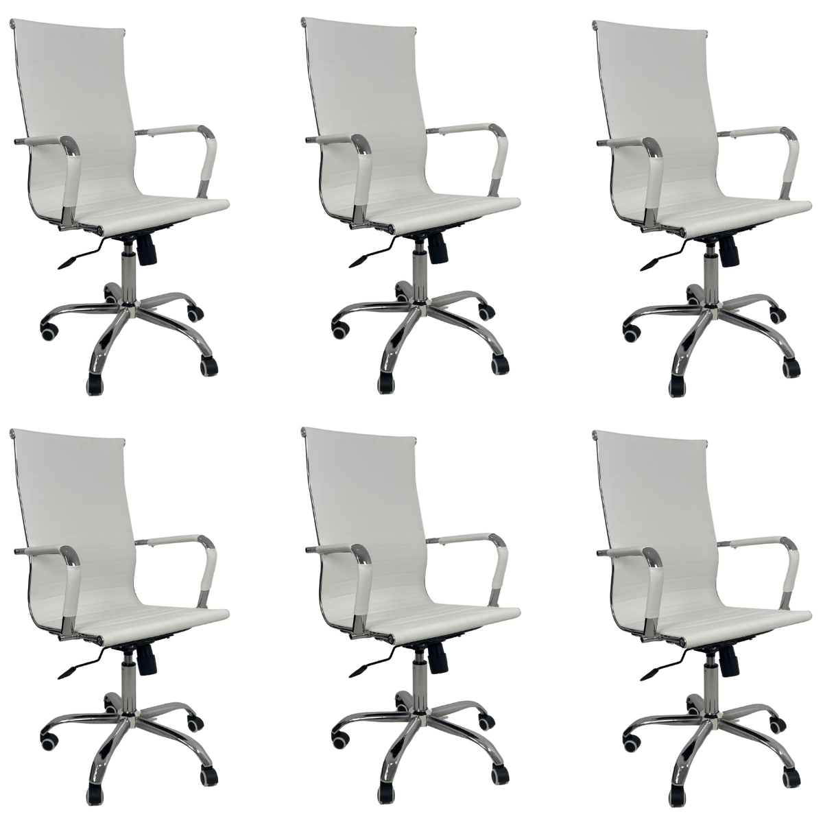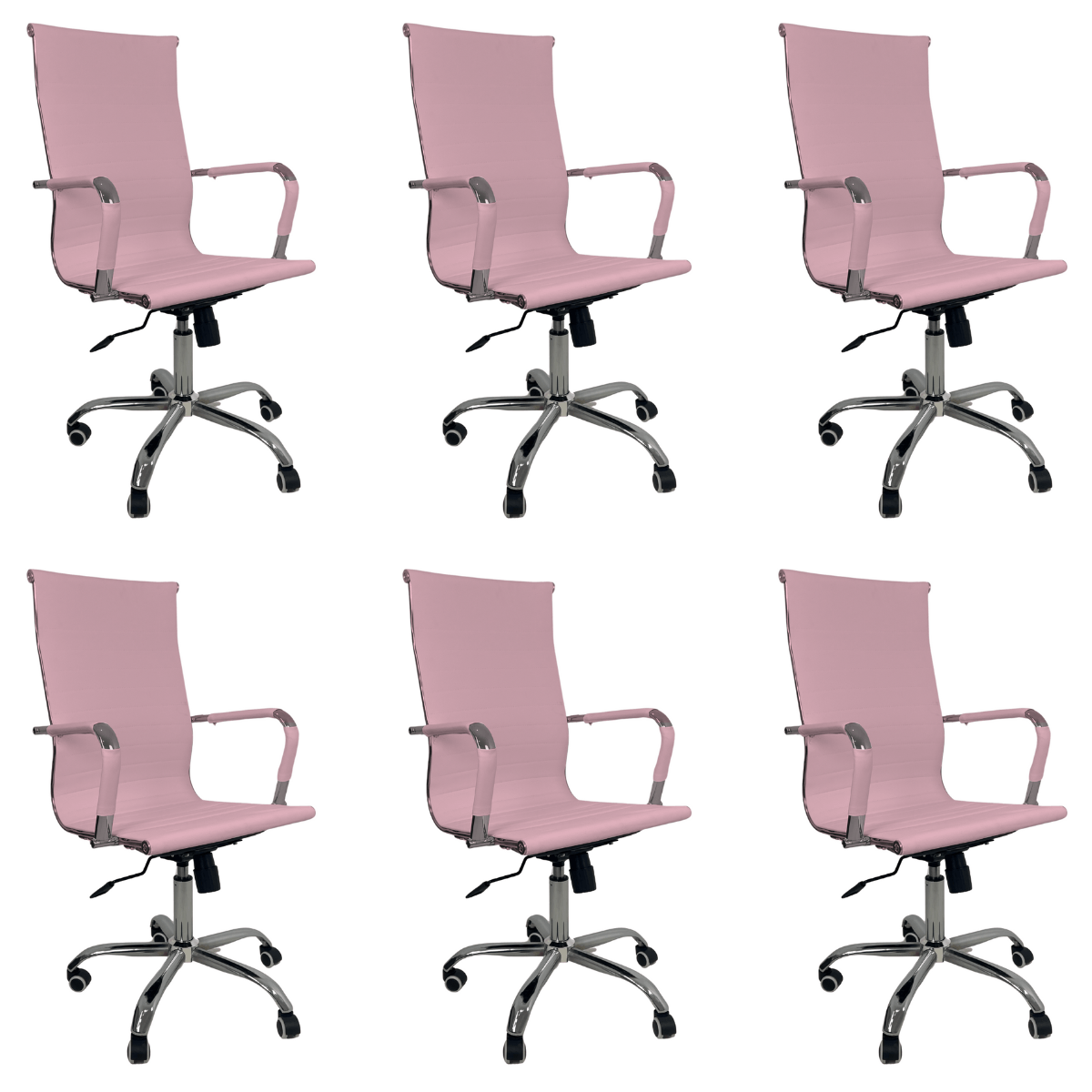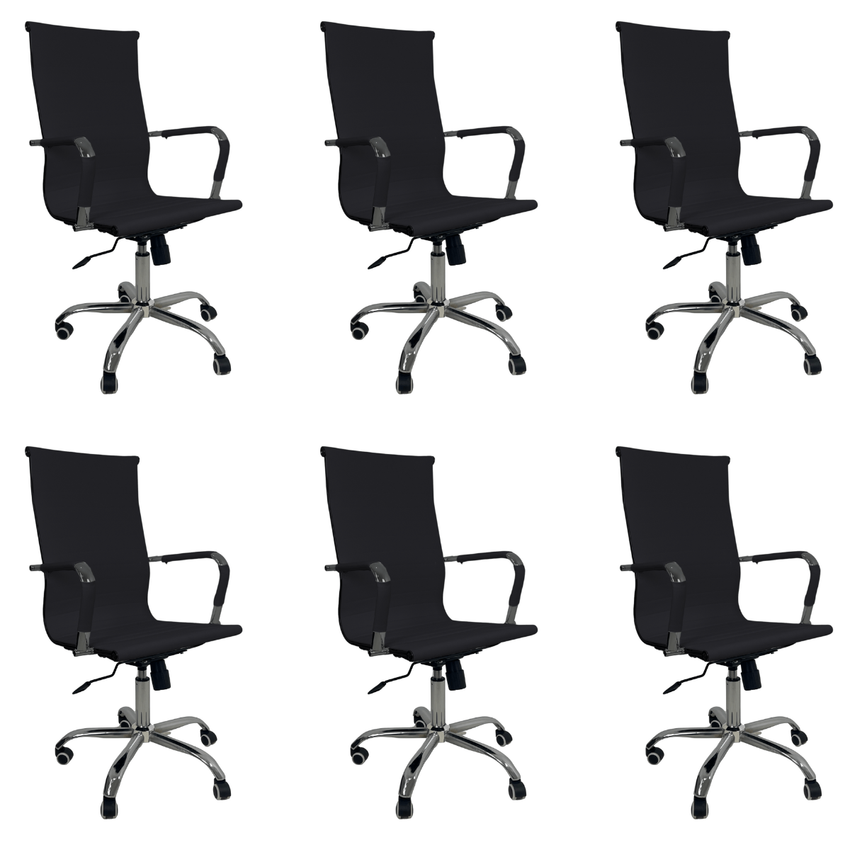 Kit 6 Cadeira Escritório Esteirinha Giratória Alta Ajustável - Cinza