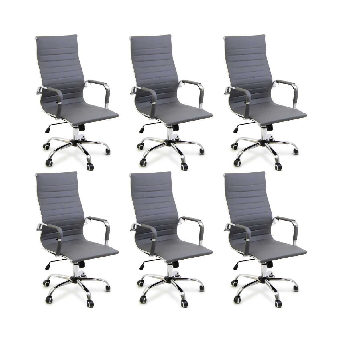Kit 6 Cadeira Escritório Esteirinha Giratória Alta Ajustável - Rosa