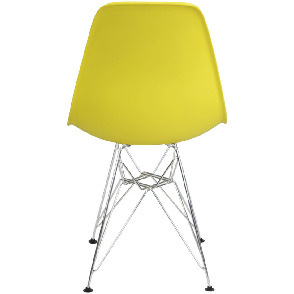 Kit 3 Cadeiras Charles Eames Eiffel Base Metal Cromado Amarela