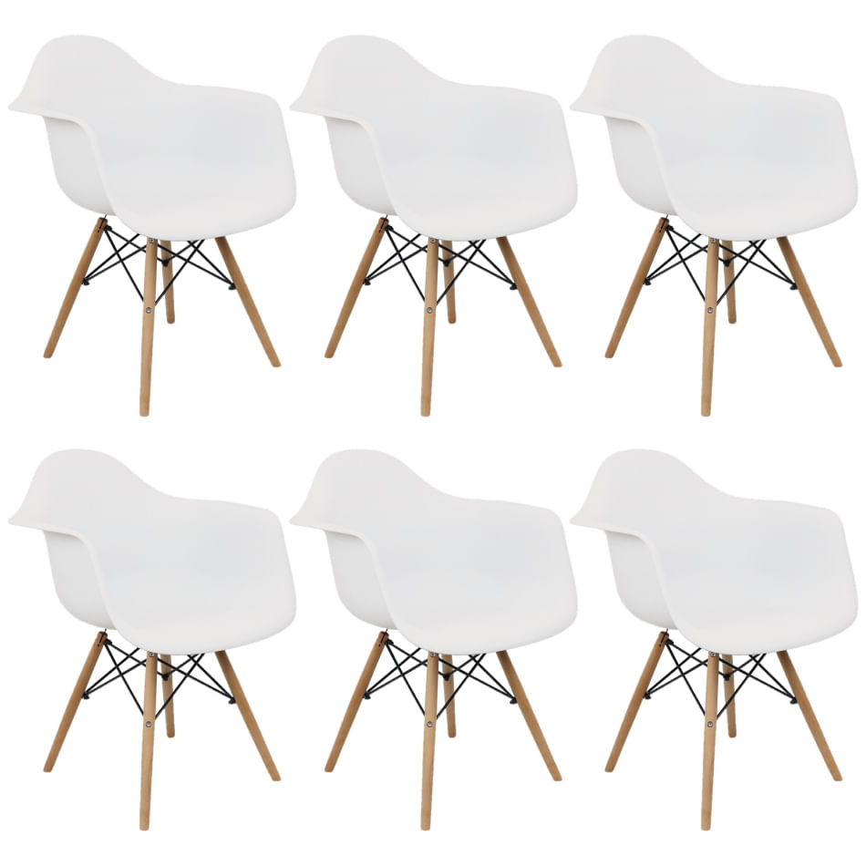 Kit 6 Cadeiras Charles Eames Eiffel Design Wood Com Braços